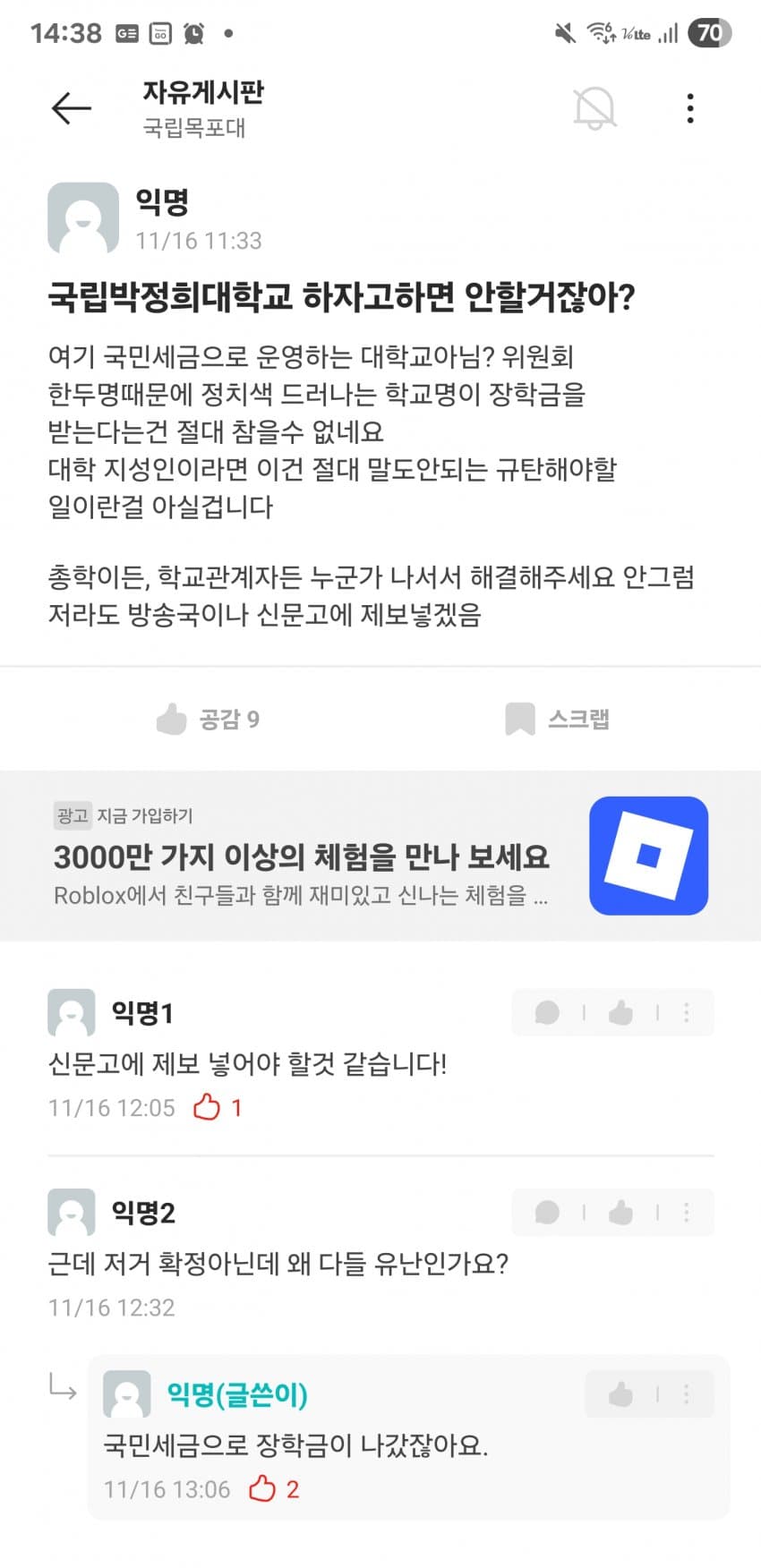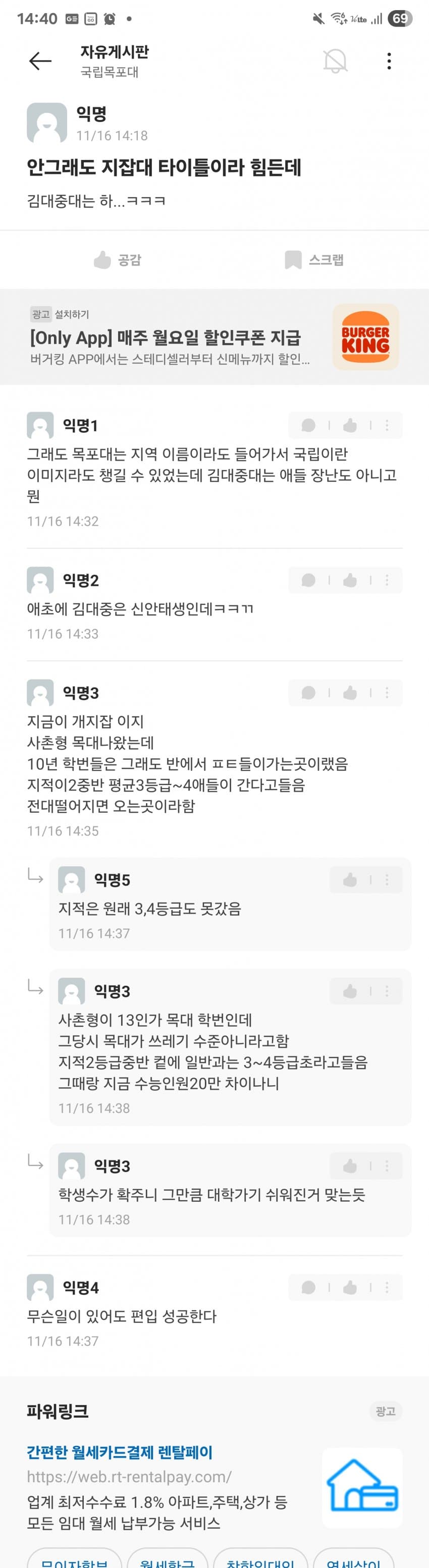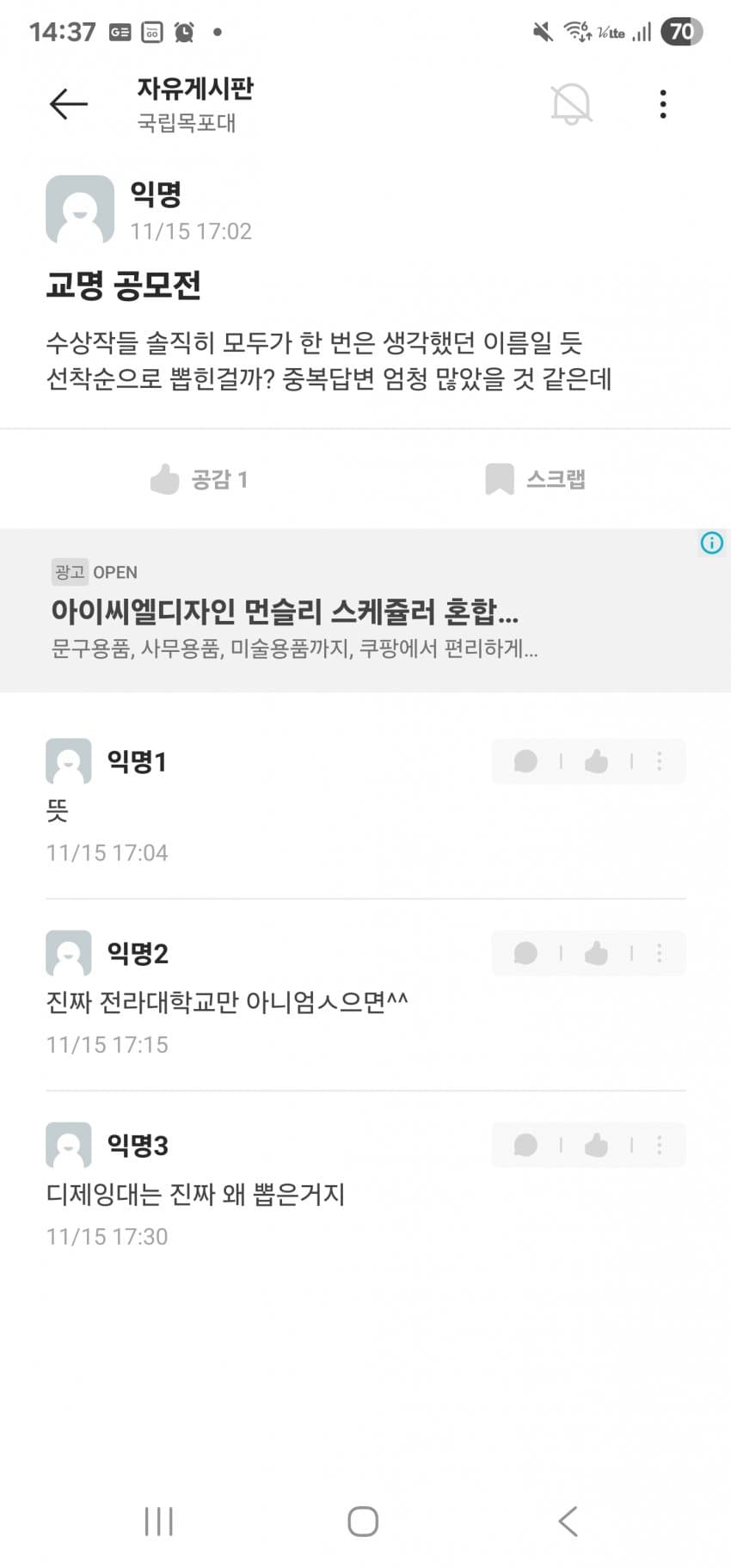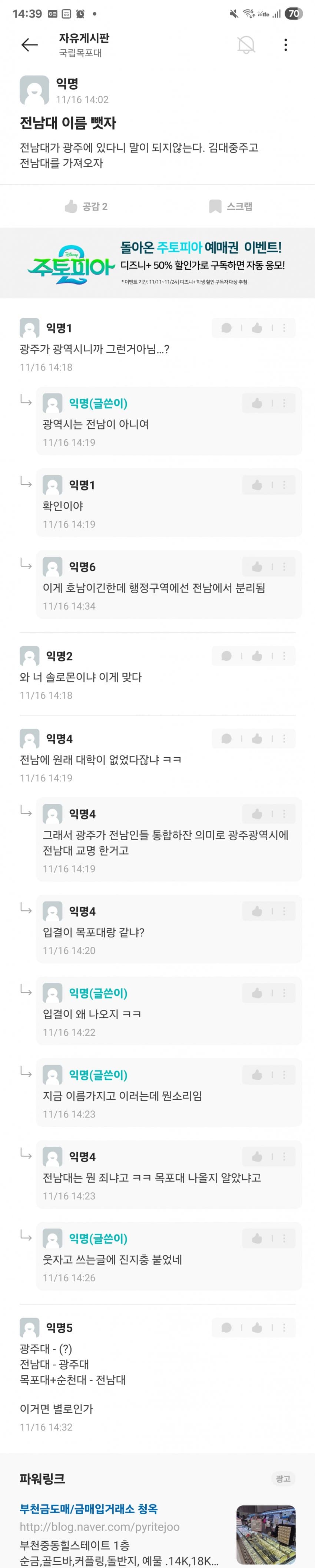 김대중대 < 써놓고 생각해보면 김포/김천/김해대 + 중부대 이딴 느낌인데 걸러내기는 커녕 오히려 시상대에 올려준 목포대 심사위원들 자질에 문제가 있지 싶음.. 외국에서 대학을 사람 이름으로 하는 경우는 있어도 김대중이라는 이름이 대학 이름으로 쓸만한 어감의 인명은 아닌데. 한자도 그렇고