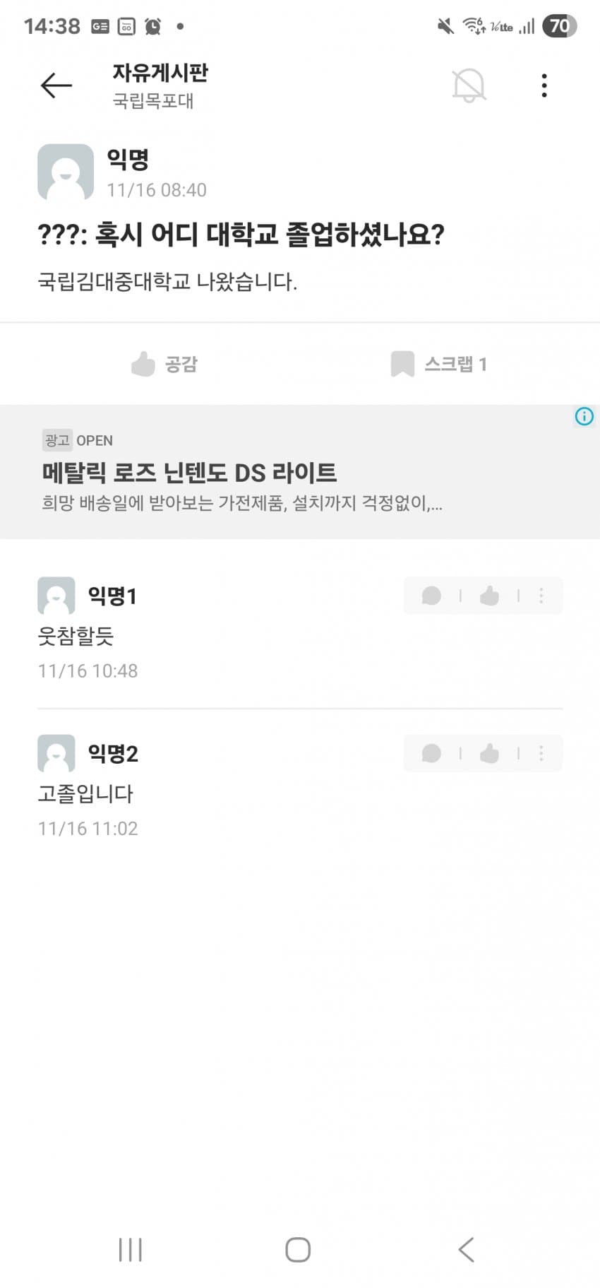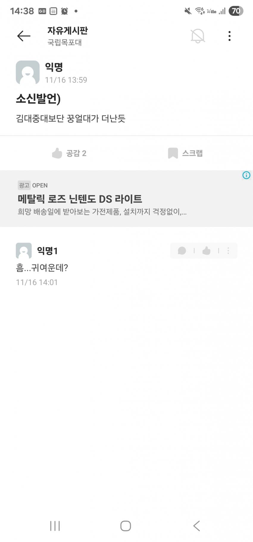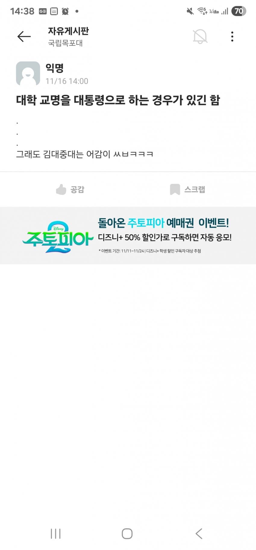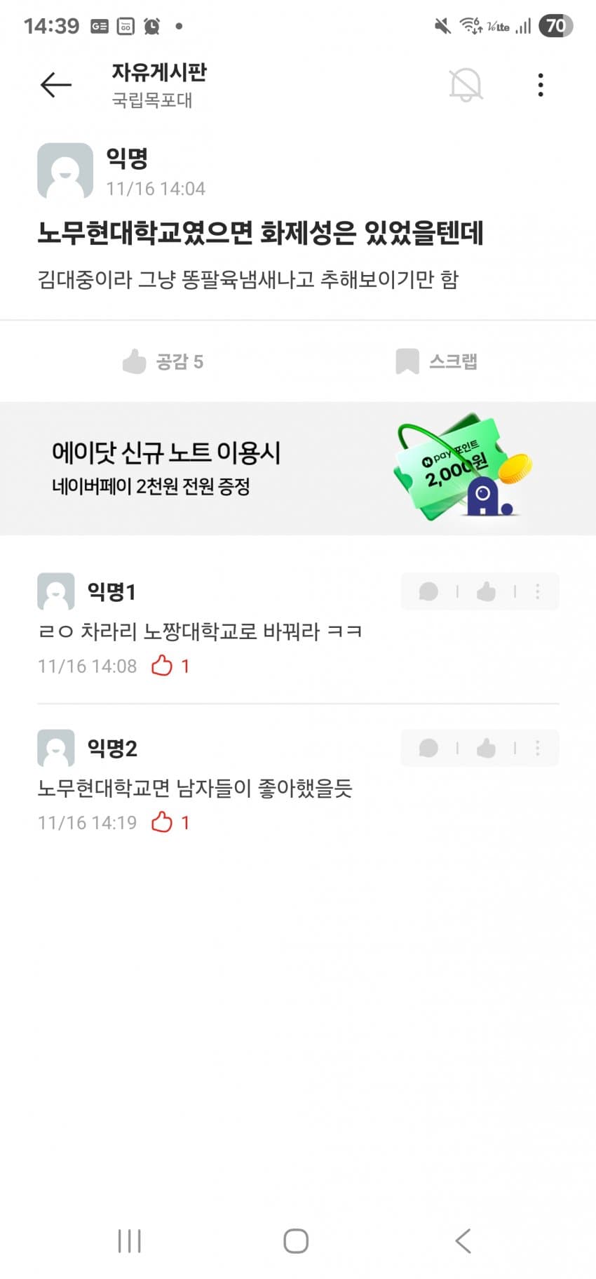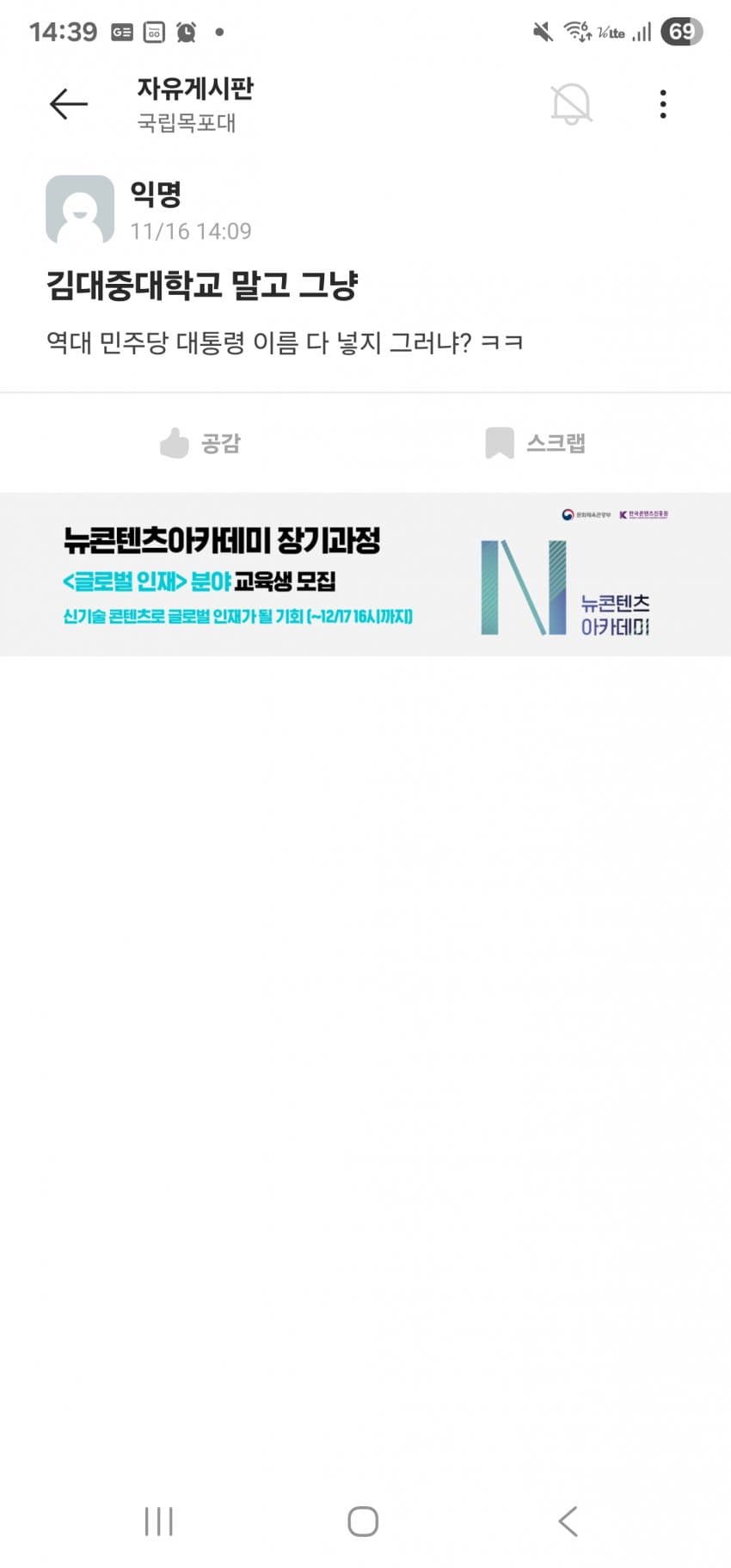 김대중 대학교면 핵물리학과 있어야되는거아님???