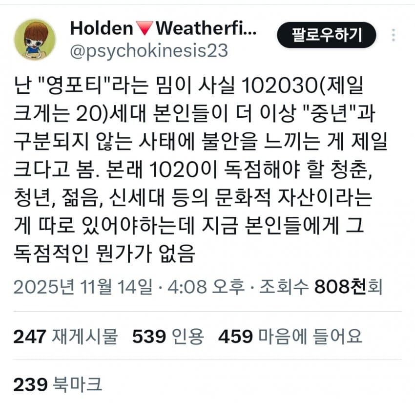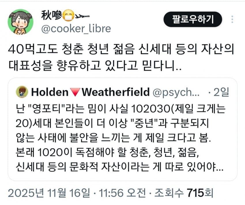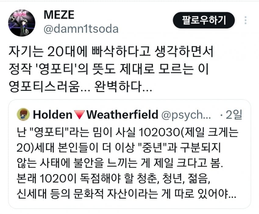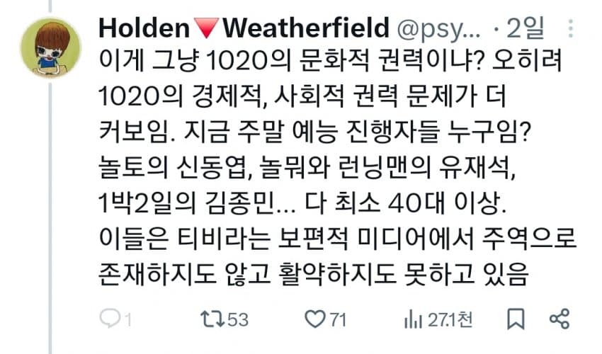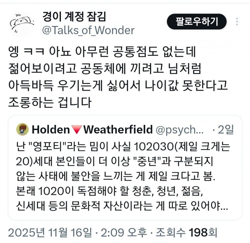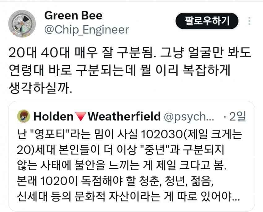 "20대본인들이 더 이상 중년과 구분되지 않음"