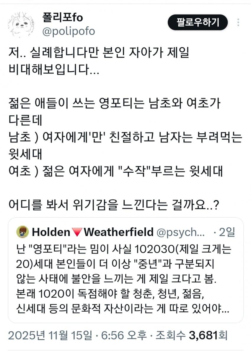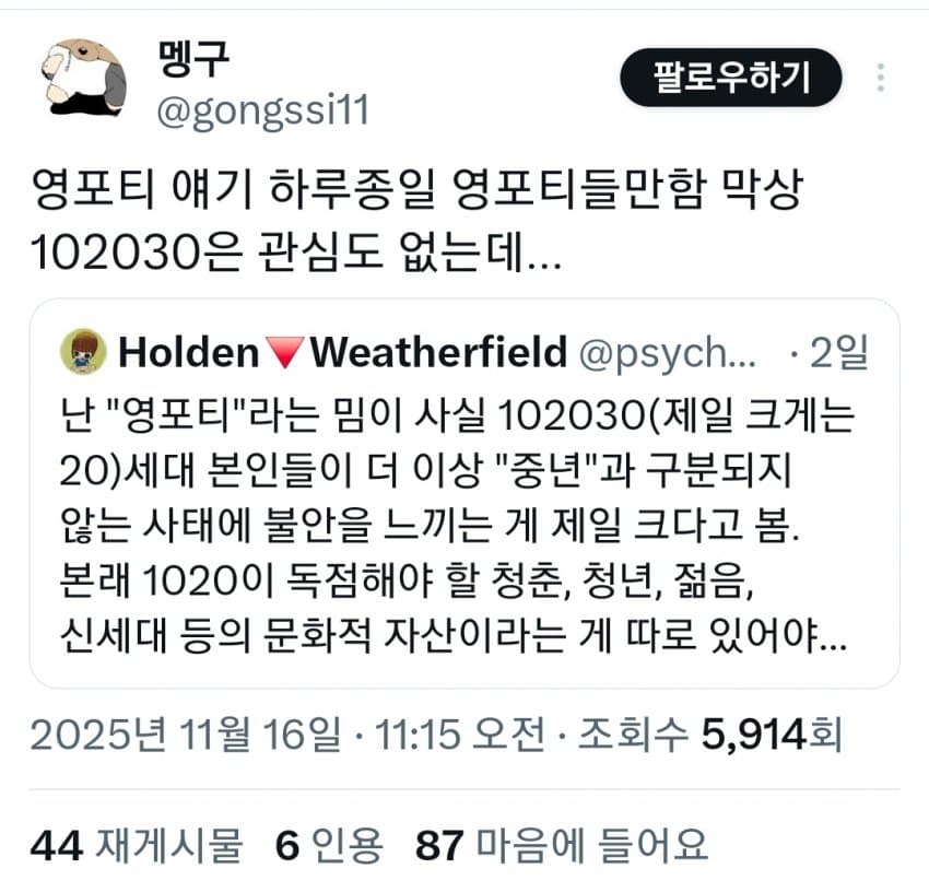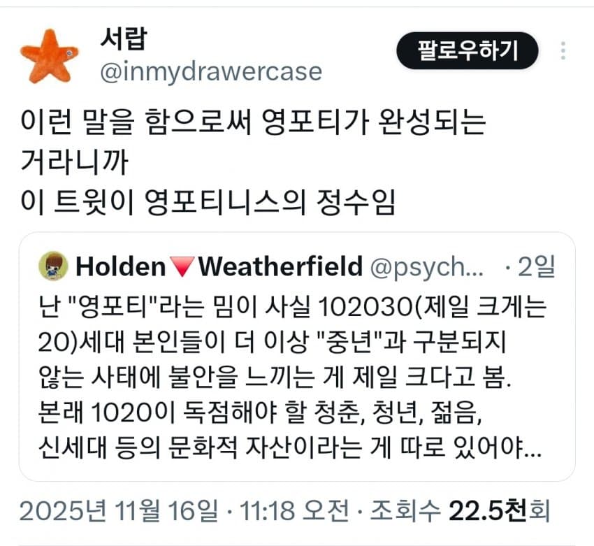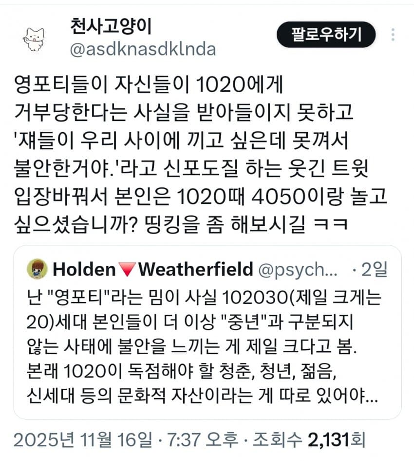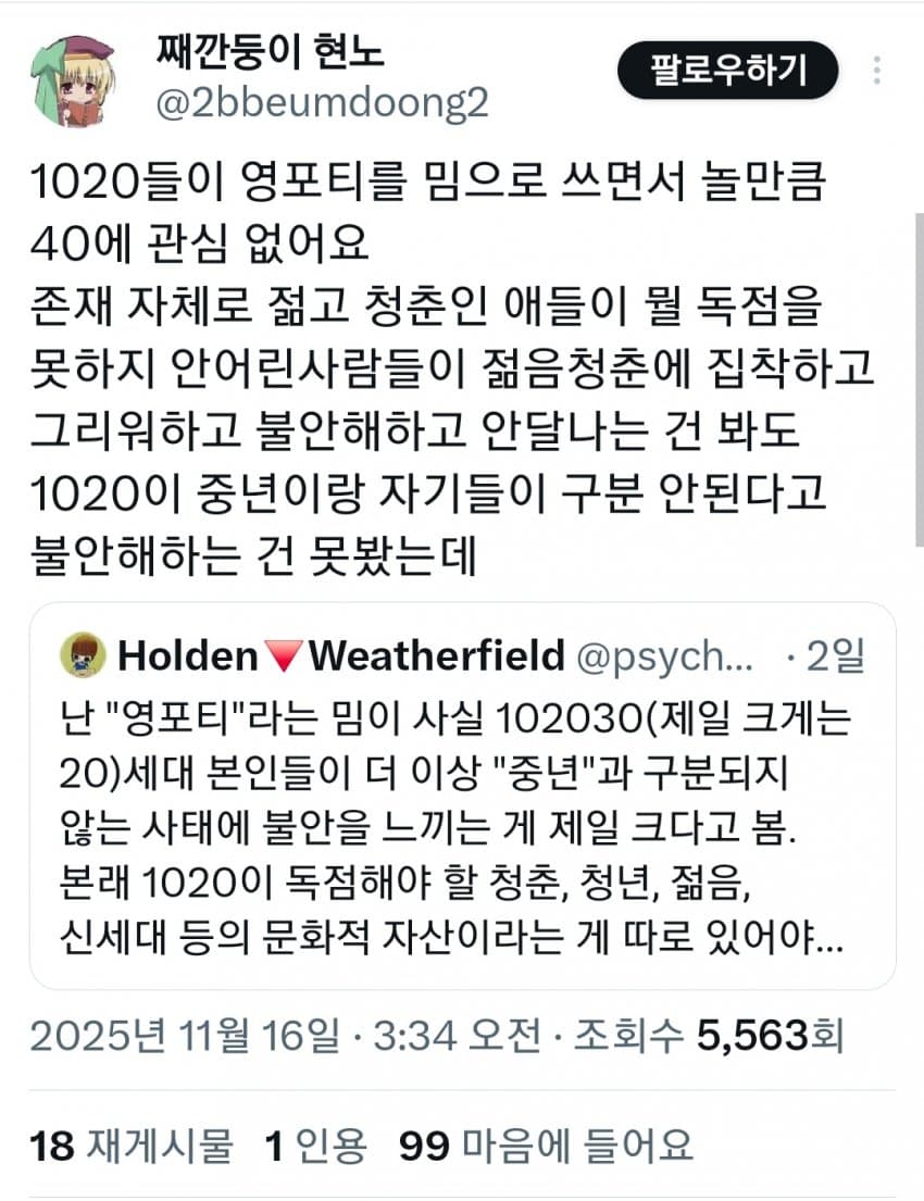 "20대본인들이 더 이상 중년과 구분되지 않음"