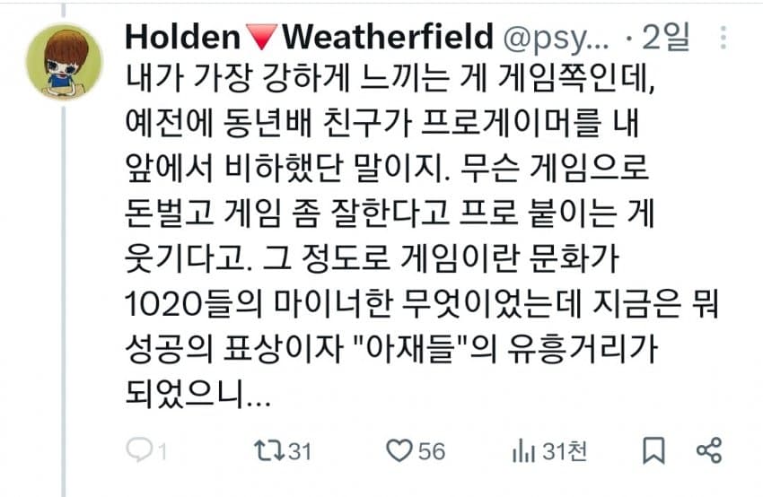 "게임만 해도 옛날엔 1020대의 마이너한 문화였음"