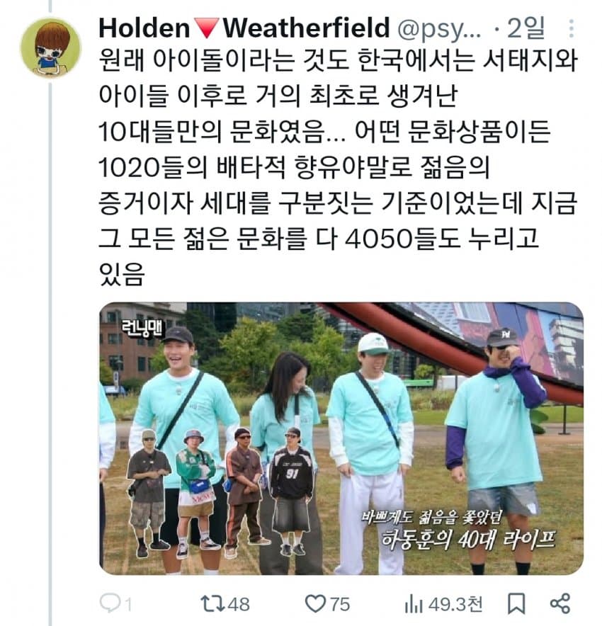 "원래 아이돌도 40대들이 어릴때 좋아하던 서태지가 최초였음"