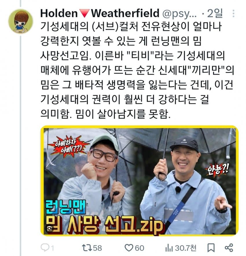 "TV라는 매체에서 밈 사망선고 내리는거 봐라"