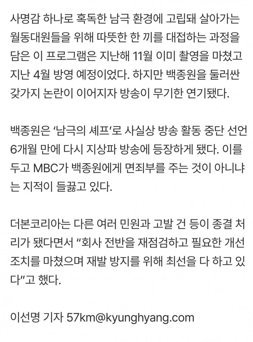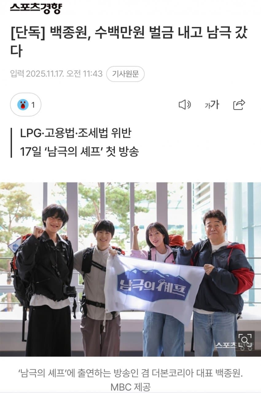[단독] 백종원, 수백만원 벌금 내고 남극 갔다