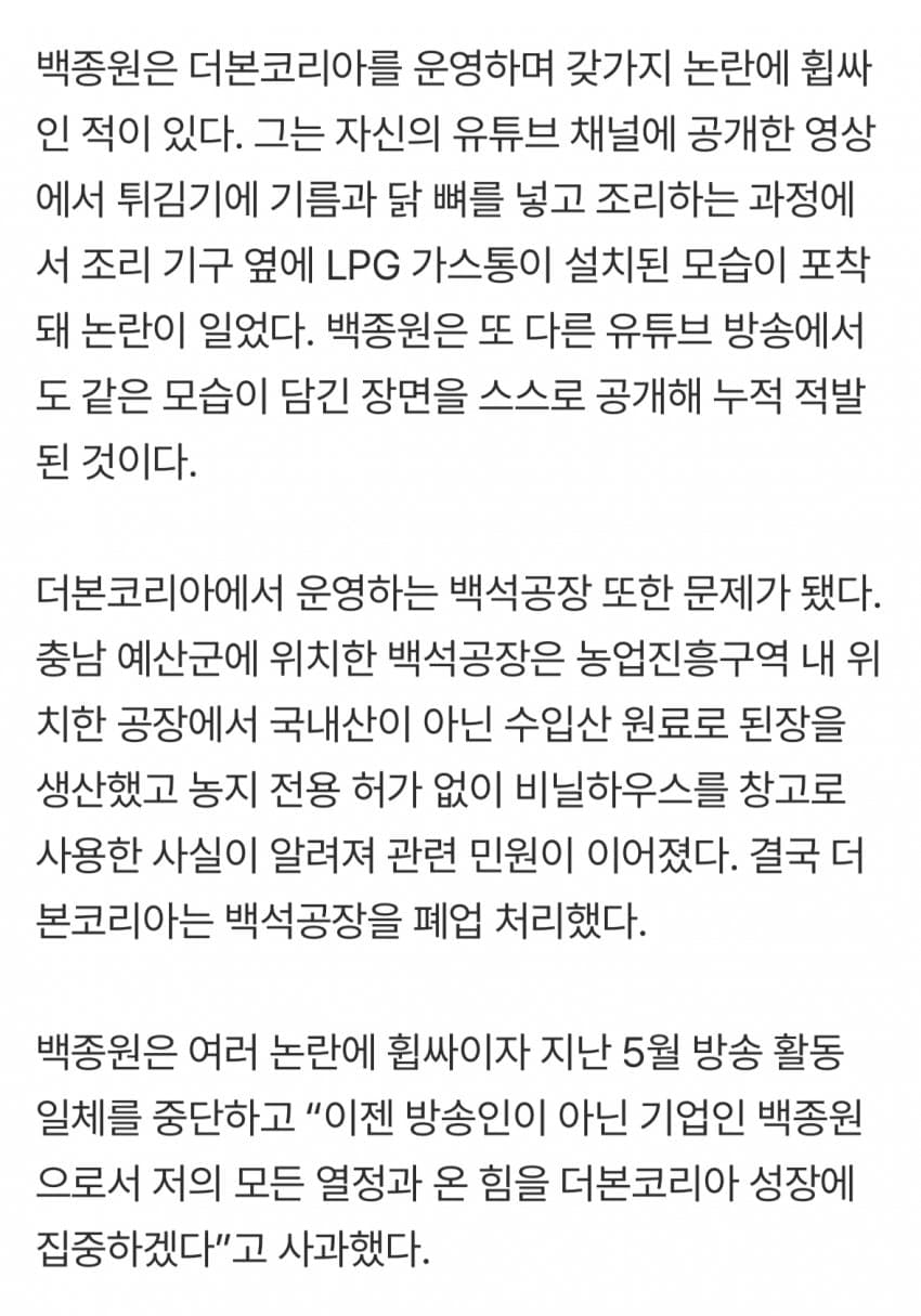 검은머리 짐승은 어지간해선 고쳐쓰는거 아닌데 수장으로 백종원 이 있는데 뭘 재발방지를 해? 확실한 재발방지할라면 백종원부터 없어져야지 확실한 재발방지가 되지 헛소리만 적어놓은 입장문이었군