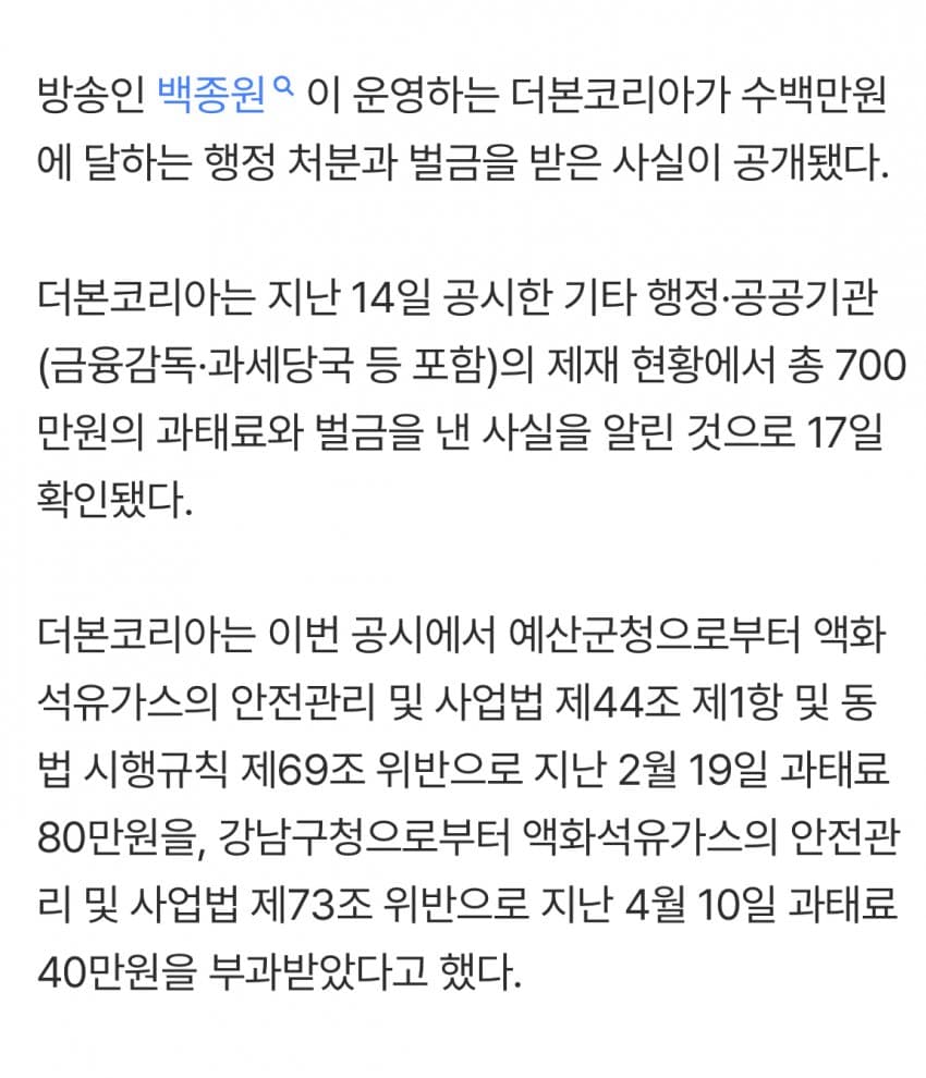 백종원한테 700만 원이면 그냥 생수 한 병 돈 아니노눈 하나 깜빡 안 하겠노