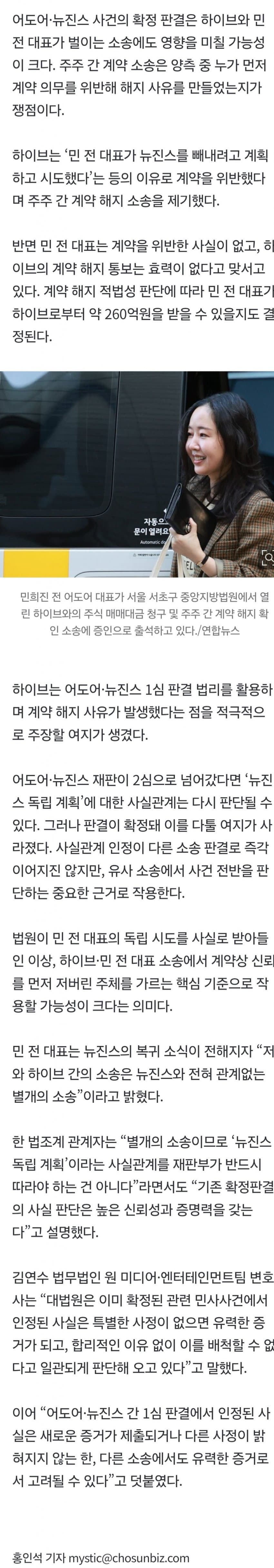 애초에 재판 초반에 민희진이 이겼다고 신나서 깝치던 판결문도 '배임 계획은 있었지만 실행하지 않아서 무혐의'였음. 그래서 '계획' 자체를 판결해달라는 게 새로운 재판의 내용이었고