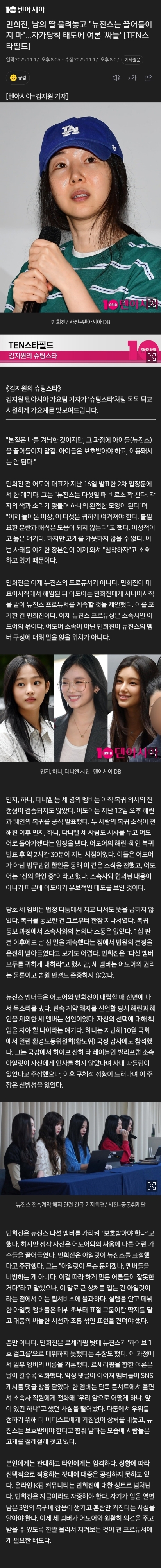삼진스 부모는 아직도 민희진편 혜인 해린 부모만 혜인아빠 설득으로 넘어옴