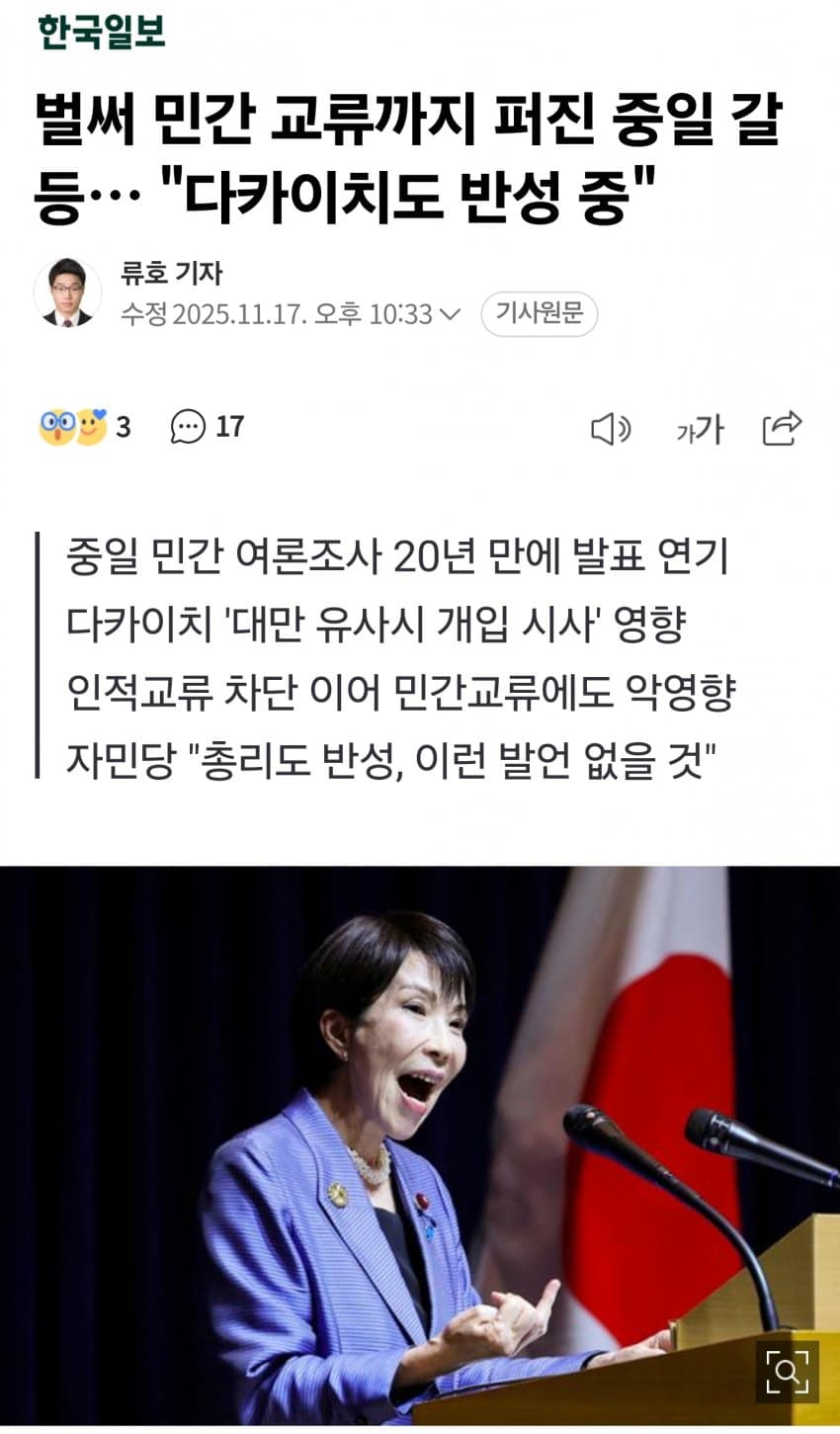 일본 여야 주요 정치인들이 모두 다카이치한테 얼른 머리 숙이고 사죄하라고 압박중이라 호스티스년도 골치아플 거임