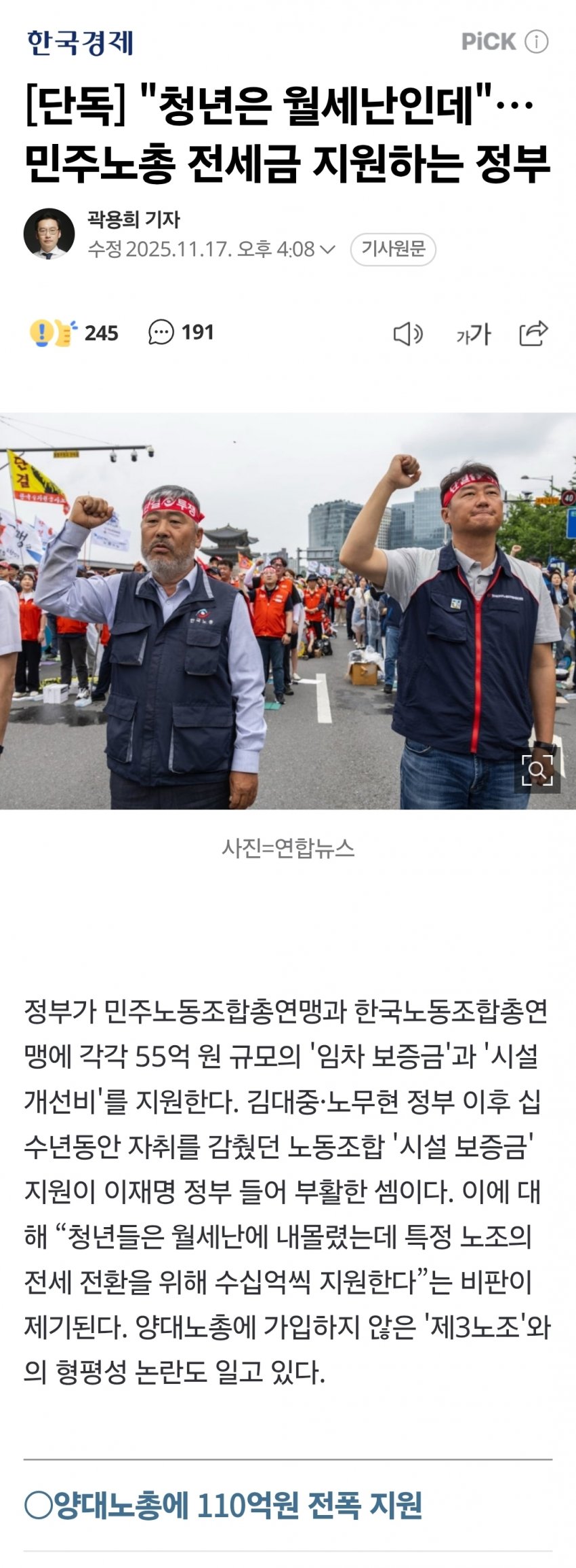 민주당 새기들이 거대노총들한테 표받았으니 피같은세금 갖다 바치는거봐라. 드러운정권에 드러운 거대노조. 진짜 대통령이나오면 저런 거대노조들 싹다 없애고 전부 저새기들 구속시켜야됨 안에들여보면 비리가 어마어마할듯