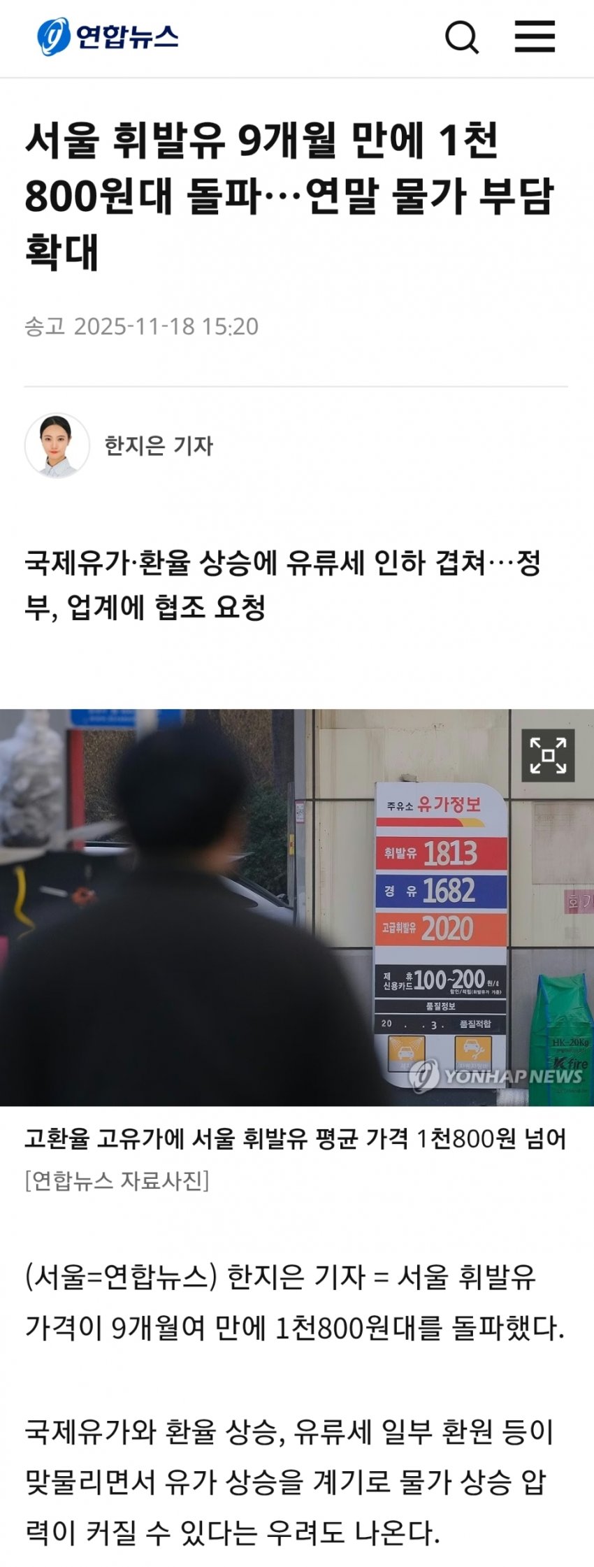 차 잘 안 타는데 기름값 올라서 절반만 넣어뒀는데 그냥 가득 채워둬야 하나 찢 시발련아