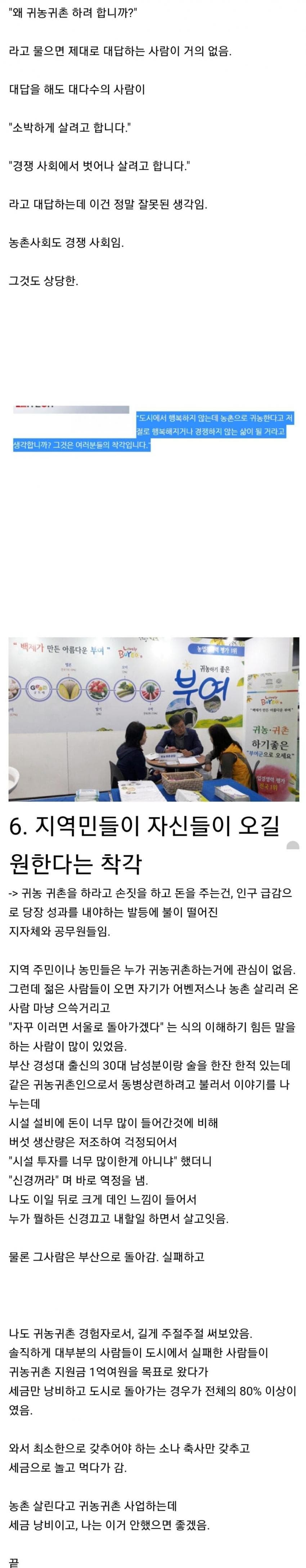 어쨌든 지역민들이 귀농 귀촌하는 사람들을 반기지 않는건 팩트라는거고 텃세도 있겠고만 말이 기네