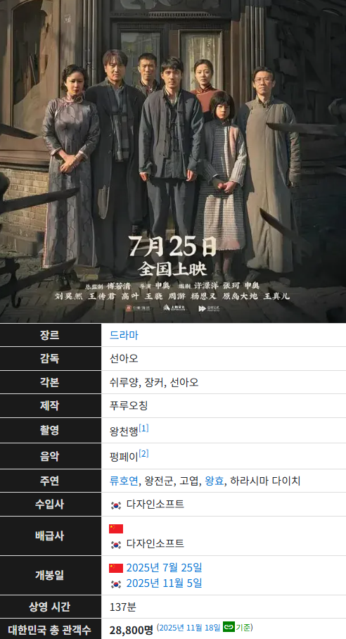 이거말고 장진호, 금강천 같은 영화 적극 띄웠어야지.말그대로 항미원조 전쟁에서 인민해방군 전사들이 개 조센징 패잔병 떨거지들 쓸어버리는 내용이라 ㄹㅇ 빵즈 발작버튼