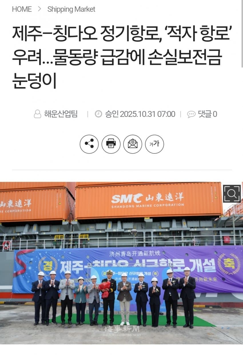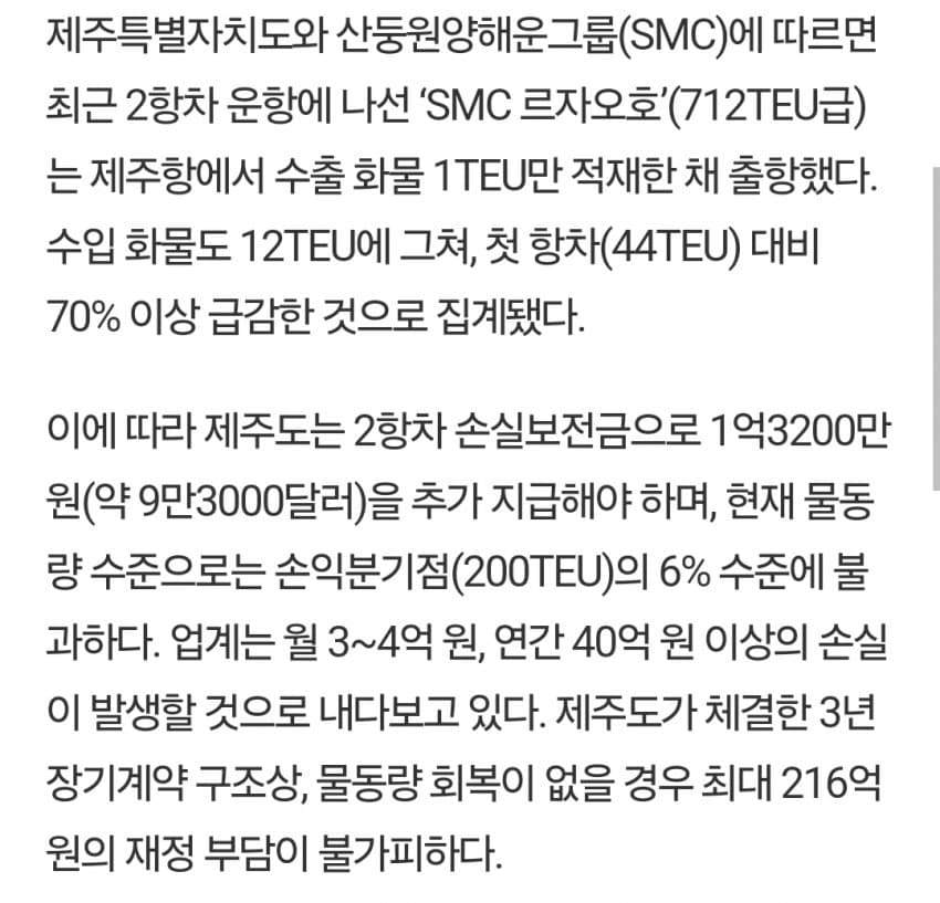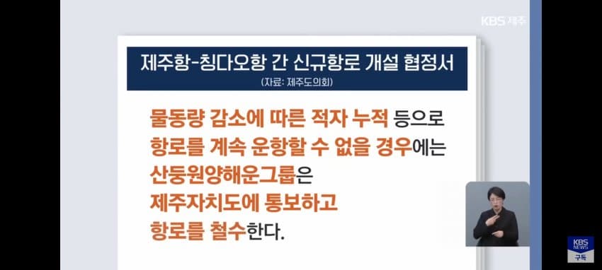 왜냐하면 제주시가 중국과 무역 개통하겠다고 중국 선사와 말도안되는 불평등 조약을 채결했기 때문임..