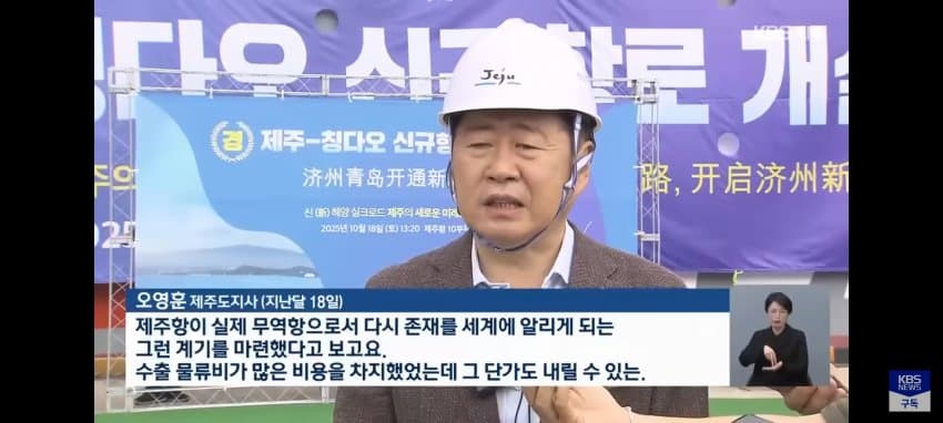 오영훈 제주시장님(더불어 민주당)도 중국과의 국제 무역이 시작된 것을