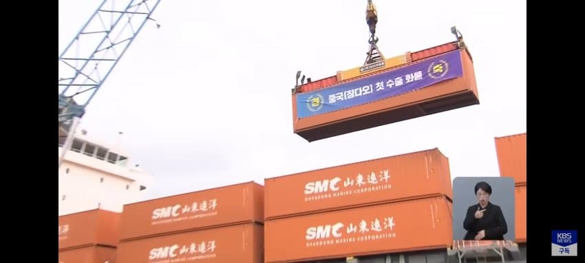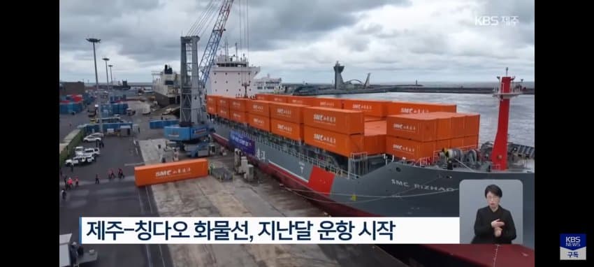 저번 달 부터 제주와 중국 칭다오를 오가는 화물선 운항이 시작되었음.