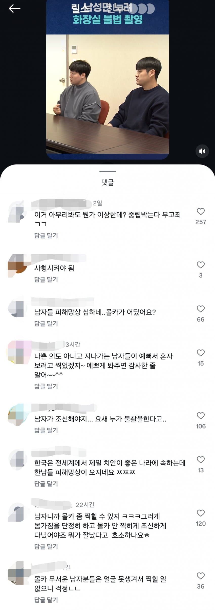 여자가 불법촬영 당하면 남자는 잠재적 범죄자라고 엄청 욕먹는데 아줌마들은 대체 뭐 저리 화를 내는거냐? ㅋㅋㅋㅋㅋㅋ