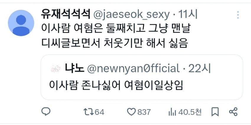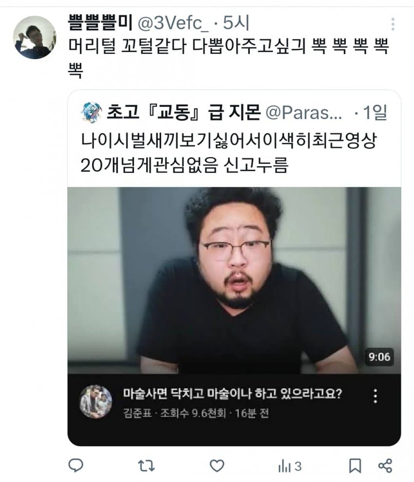 이름 얼굴 다 알려져있는 사람한테 저렇게 공개적으로 욕 박는건 진짜 쉽지않읔디