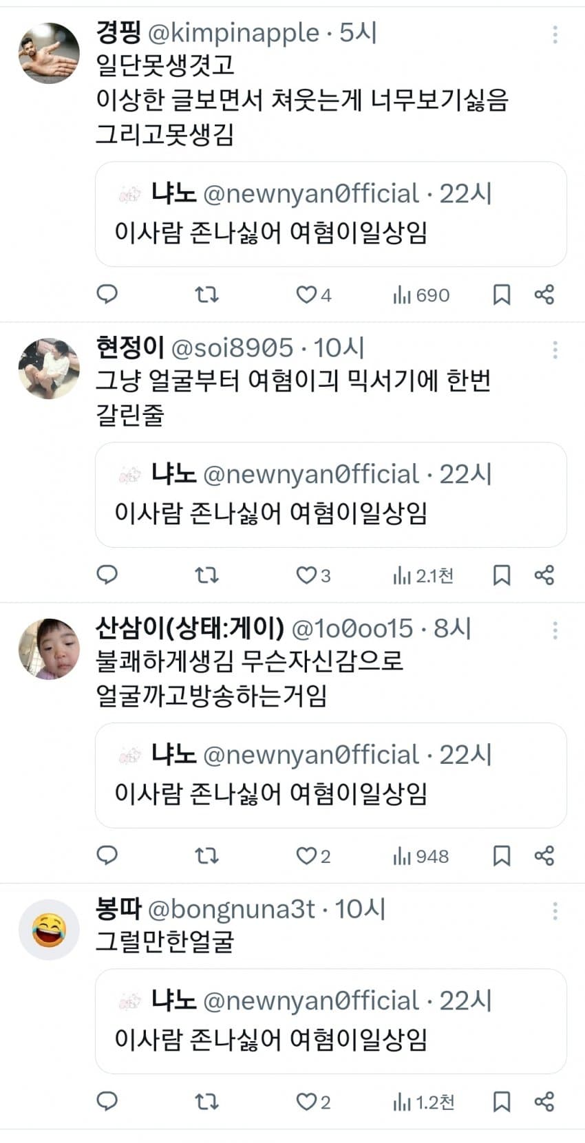 아니 뭐 얼굴 지들 맘에 안들게생겼다고 별별소리를 다듣네 ㅠㅠ
