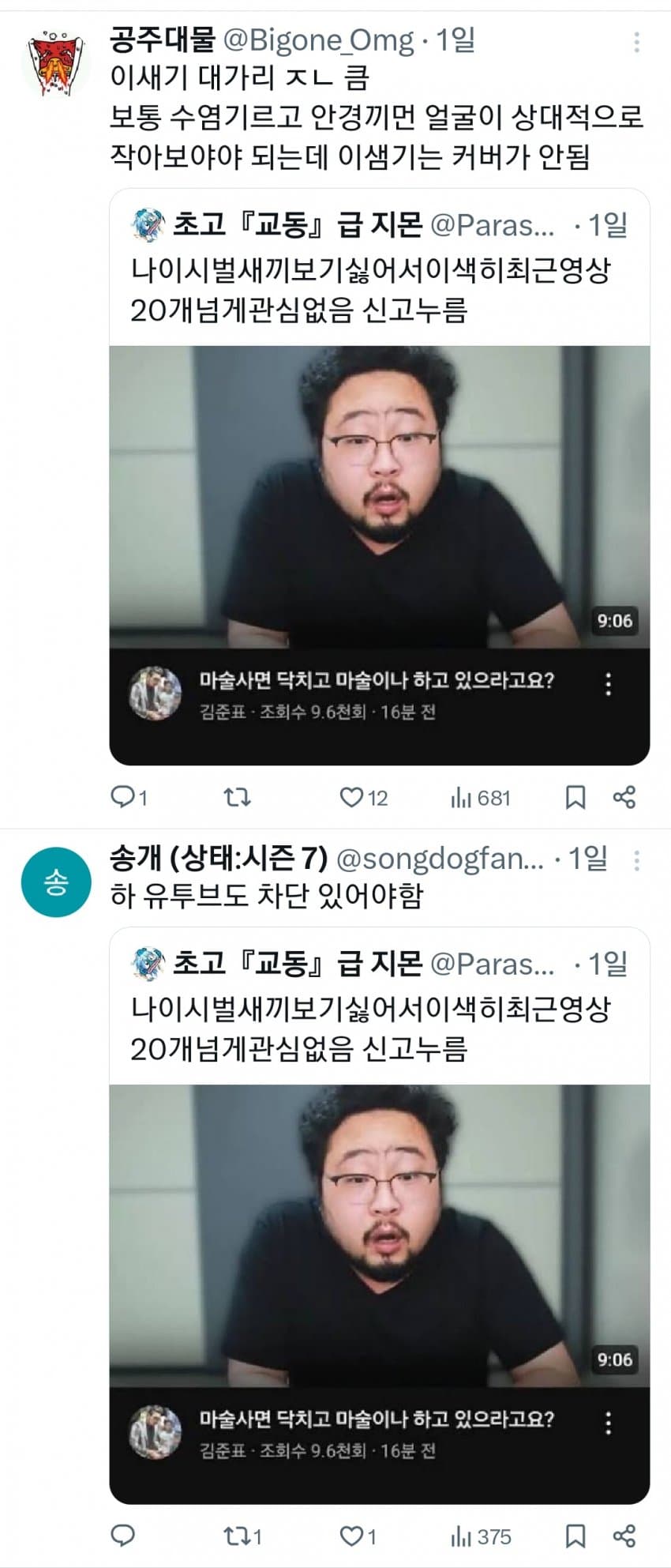 깔깔대며 댓글읽는 썸네일 vs 진지한얼굴로 고소하겠습니다 하는 썸네일