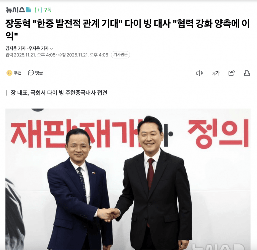 중국대사면 이재명도 머리 숙이는데 장동혁은 뭐라고 빳빳하게 들고 있냐?