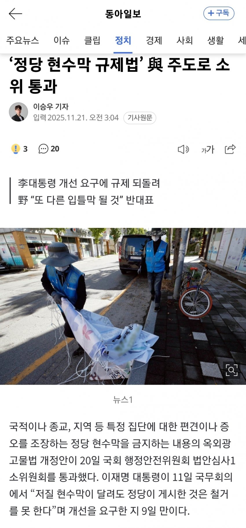 이건 진짜 잘하는거다 개같은 현수막들 좀 안보고 살고싶다