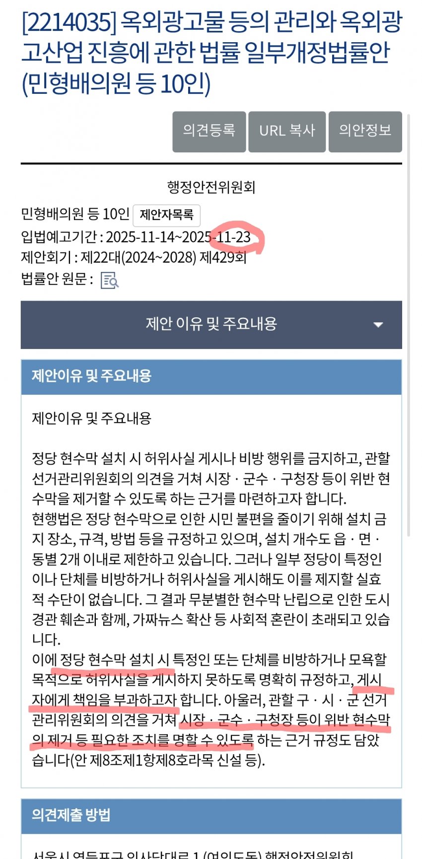 현수막 입틀막 법안, 11월 안에 통과될 듯