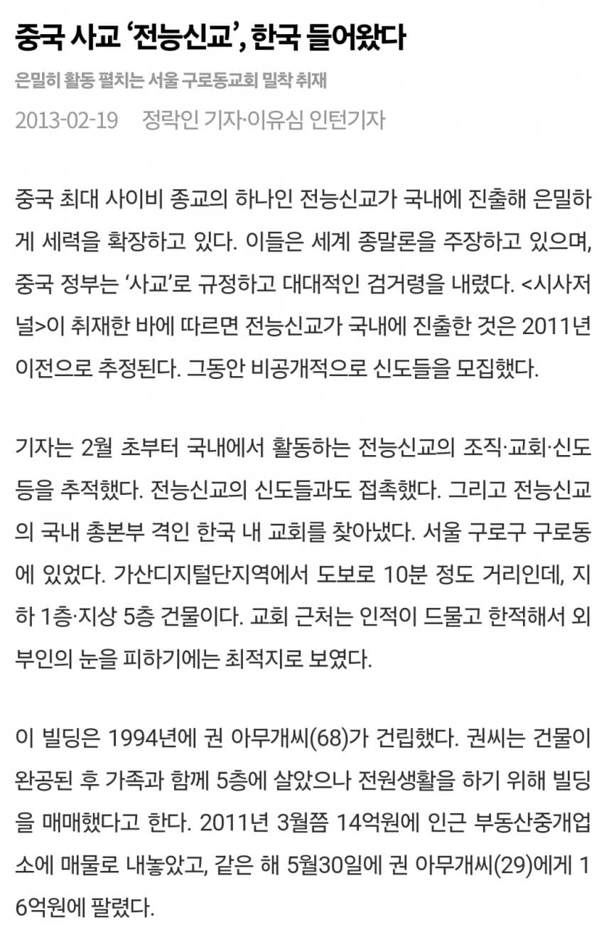 거기다 전능신교가 한국에서 세력을 확장하면서부터
