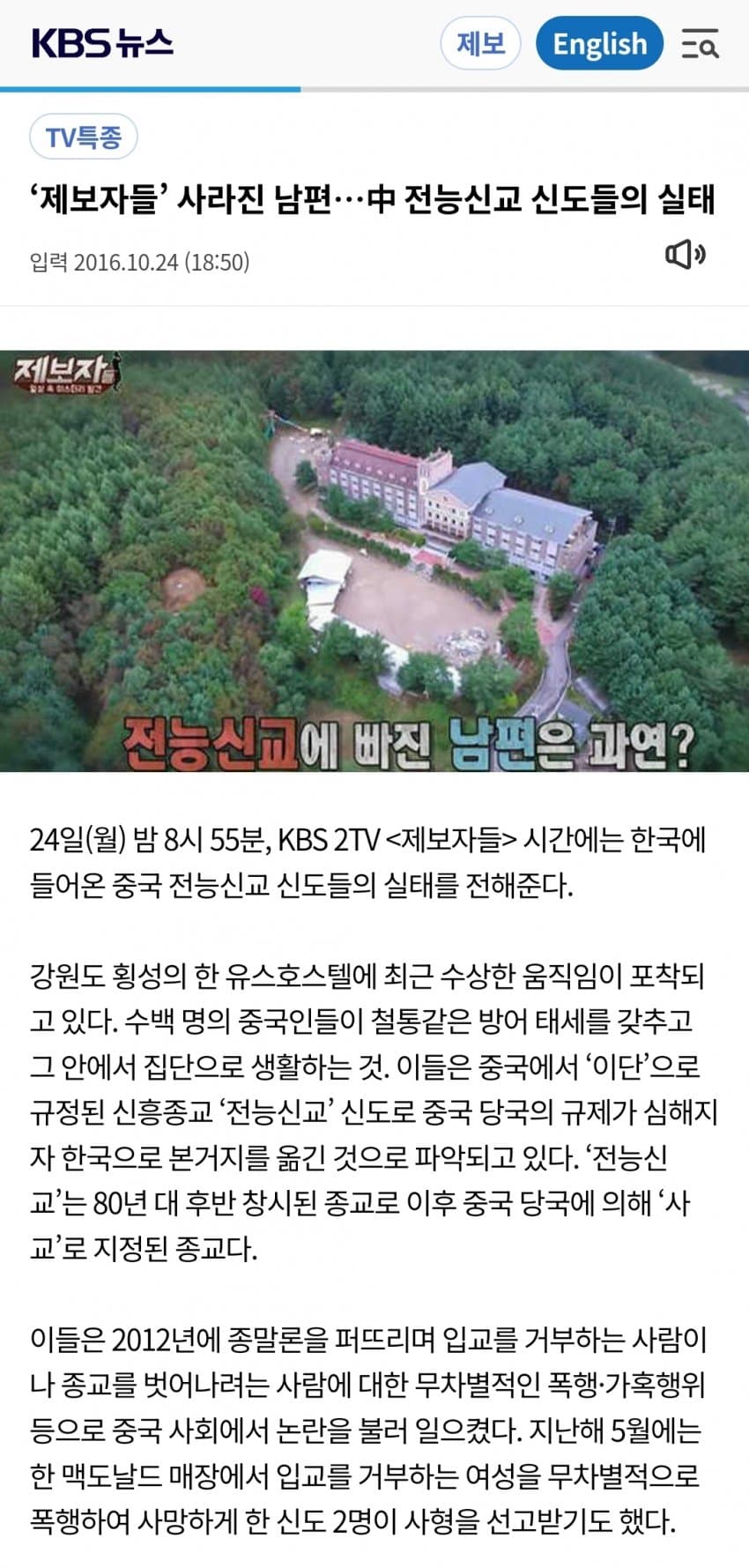 참고로 이들은 말세 그리스도가 중국에 나타났다며