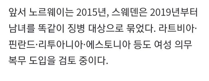 한국도 해야해 무쓸모다 이런말도 의미가없는게 초소근무나 여러군데 넣을수있는 보직많음결정적으로 개판나버린 계집애들 안보관을 좀 잡아줄필요가 있음 여자들은 북한이 진짜 친구인줄알잖아 ㅡㅡ