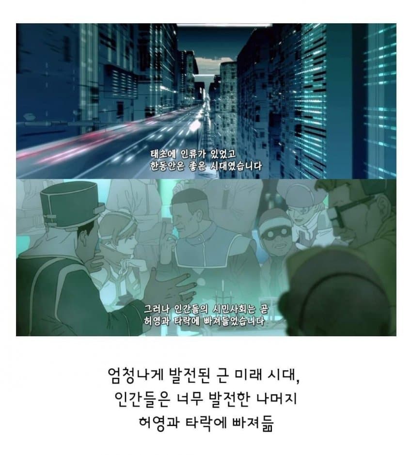 매트릭스1까지만 해도 첨단 영화의 느낌이 있었는데 2부터 그냥 구시대 무술영화가 되버림 그래서 저 배경설정이 본편보다 더 첨단이지
