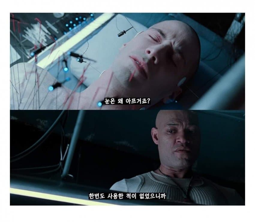 매트릭스 인물중에 동양인이 없는 이유 = 전부다 파란약을 먹었기때문에. 동양인은 백인 마냥 권력에 대항하지 못함