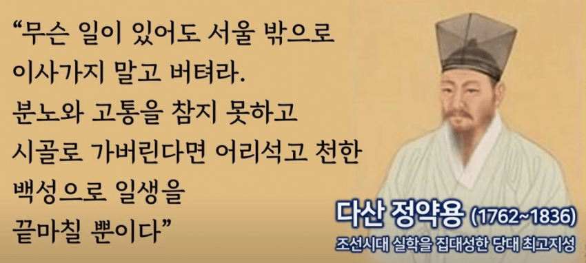 게다가 정약용은 당시 북학파 또는 백탑파라고 불리던 집단과는 거의 교류가 없었고 학문적으로 보면 오히려 원시 유학으로 돌아간 형태임. 그러니 목민심서에서 노비제의 정당성에 대해 열변을 토해내지. 흠흠신서에서는 경제 해결책이랍시고 고대 정전제나 주장하고 있는 유교 반동인데 그냥 국뽕 사학자들이 제일 유명하다고 그냥 빠는 거임