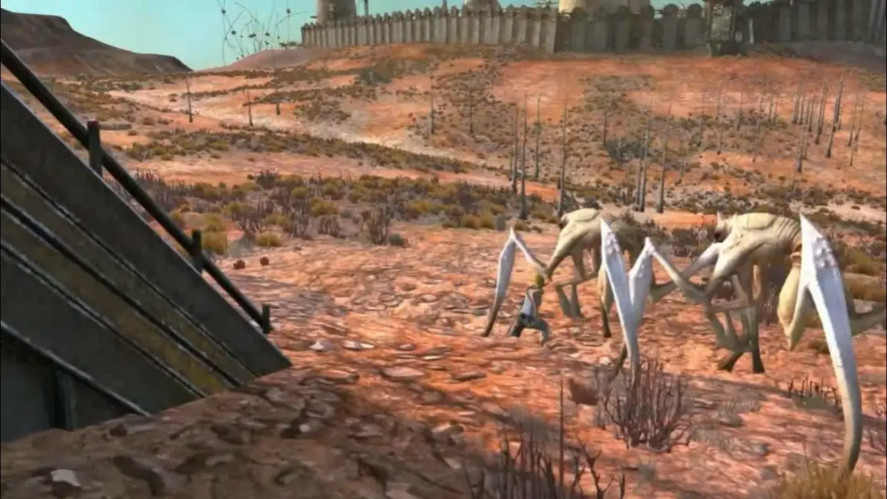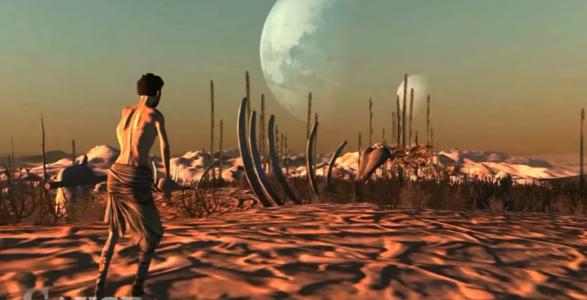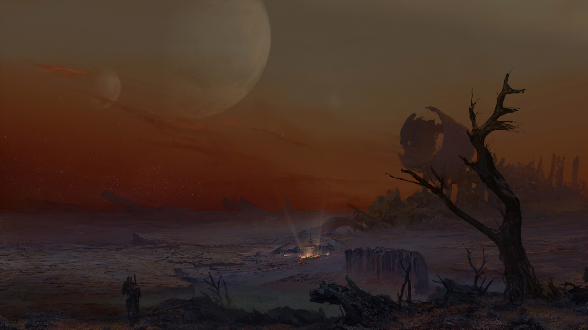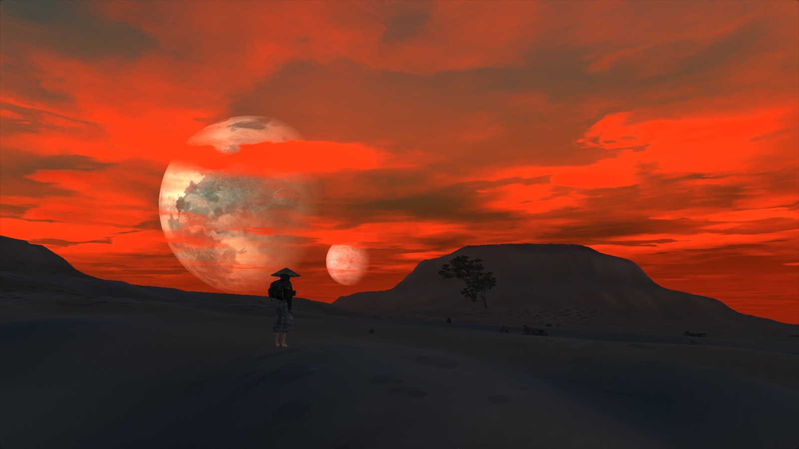 구세계가 묻혀 있는 끝없이 펼쳐진 텅 빈 사막과 모래 폭풍만이 몰아치는 멸망 이후의 황무지.
