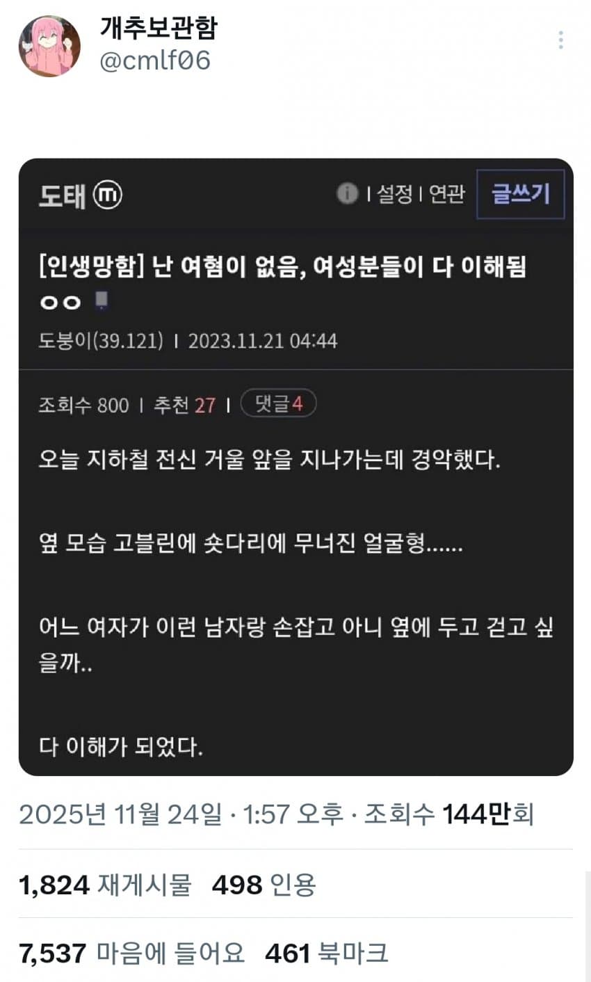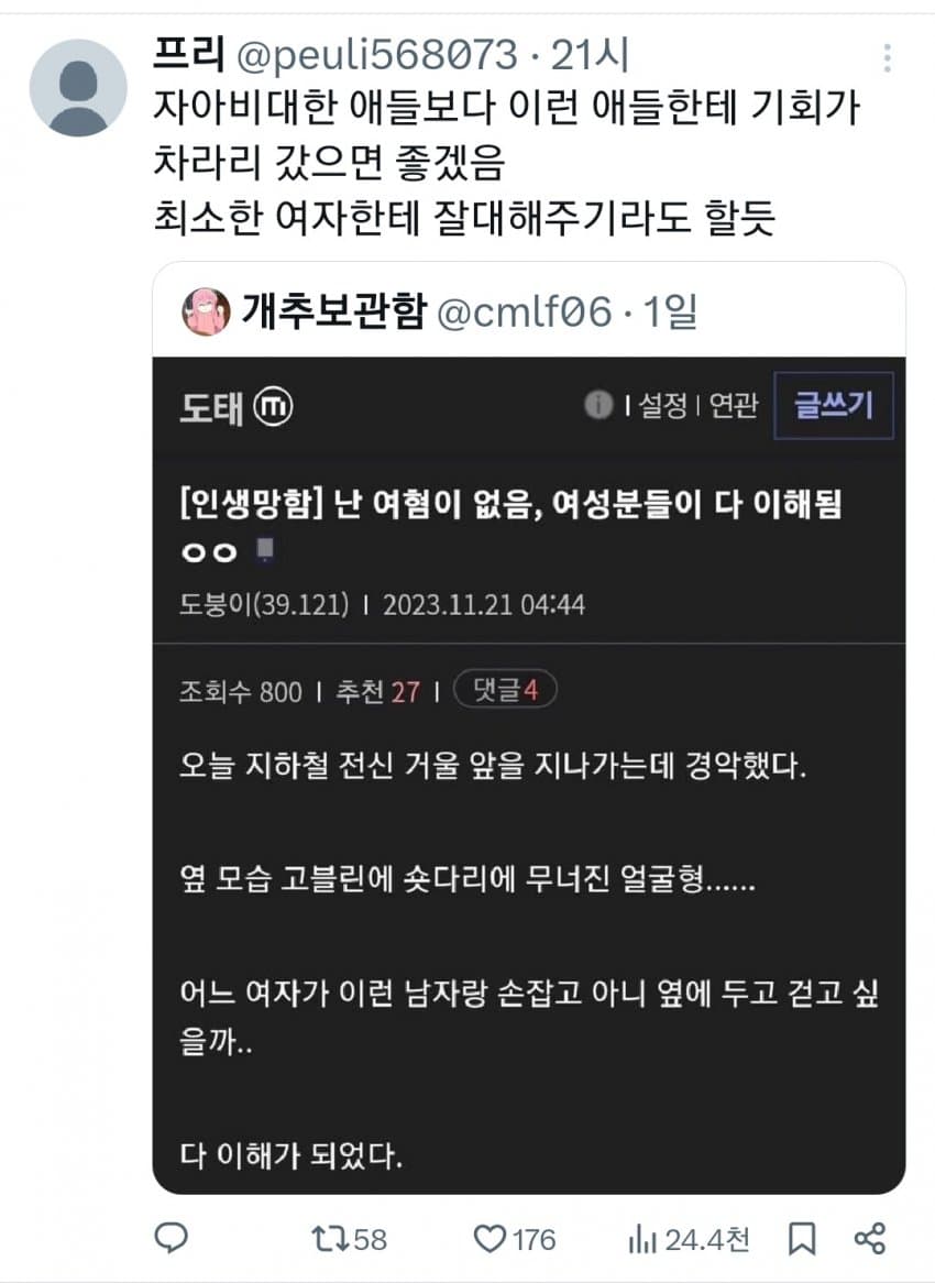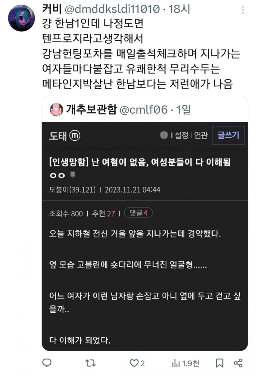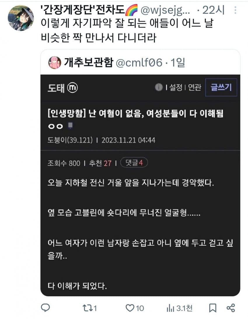동질감 느끼는거 개웃기네 역시 개빻은 머리긴 도태남들이 패미하는거였노 ㅋㅋ