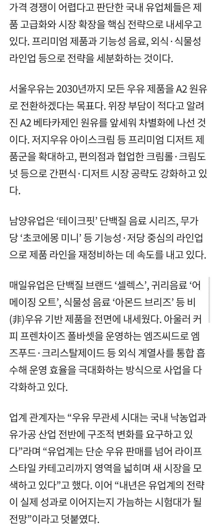 우유농가 뿐만이 아니라 농업자체가 영세하니 가격이 오르는거다. 기업화 해야한다고 생각함