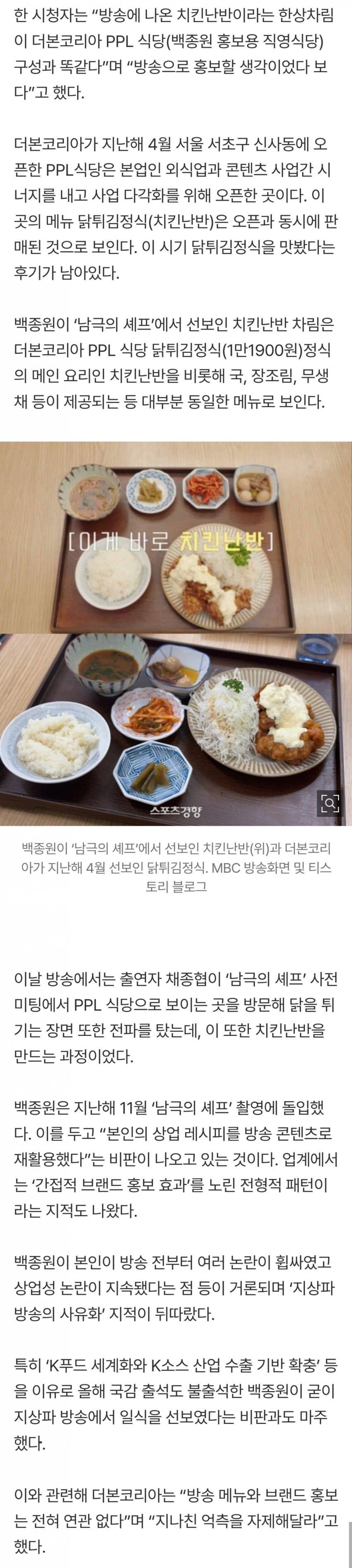 저런 간접광고를 할 거면 백종원 밀어주는 sbs mbc 같은 방송국에서 해야지ㅋㅋㅋ 왜 세금으로 운영되는 공영방송에서 저러노?