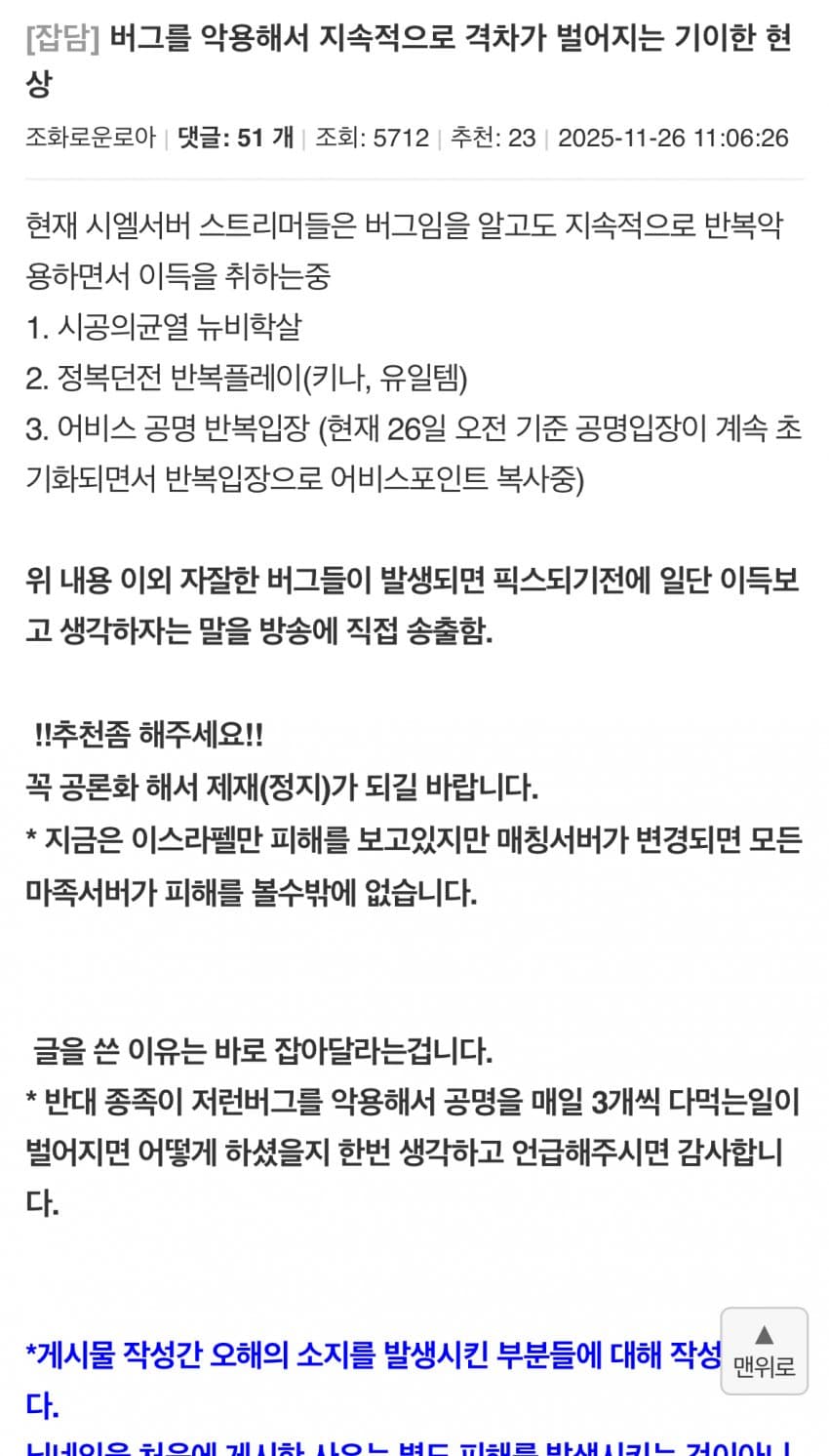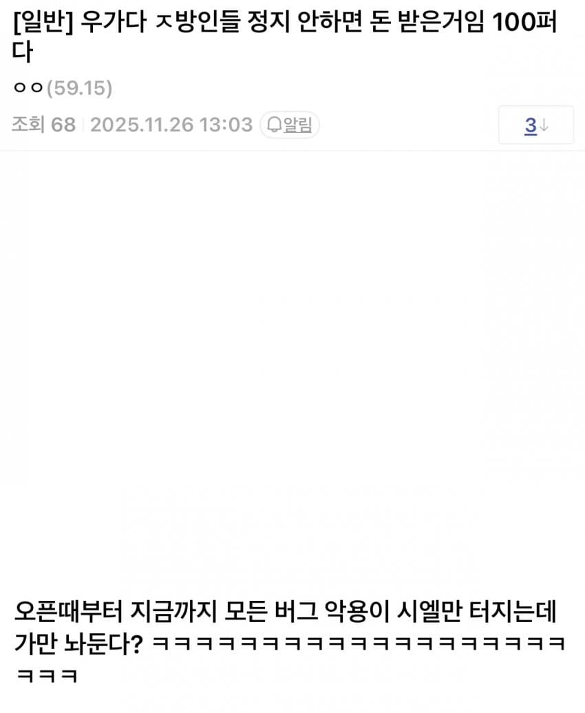 근데 리니지라이크는 버그 발견됐을 때 안쓰는 사람이 손해긴 함 수정하면서 사용한 사람 제재하는 경우 거의 없어서 ㄹㅇ