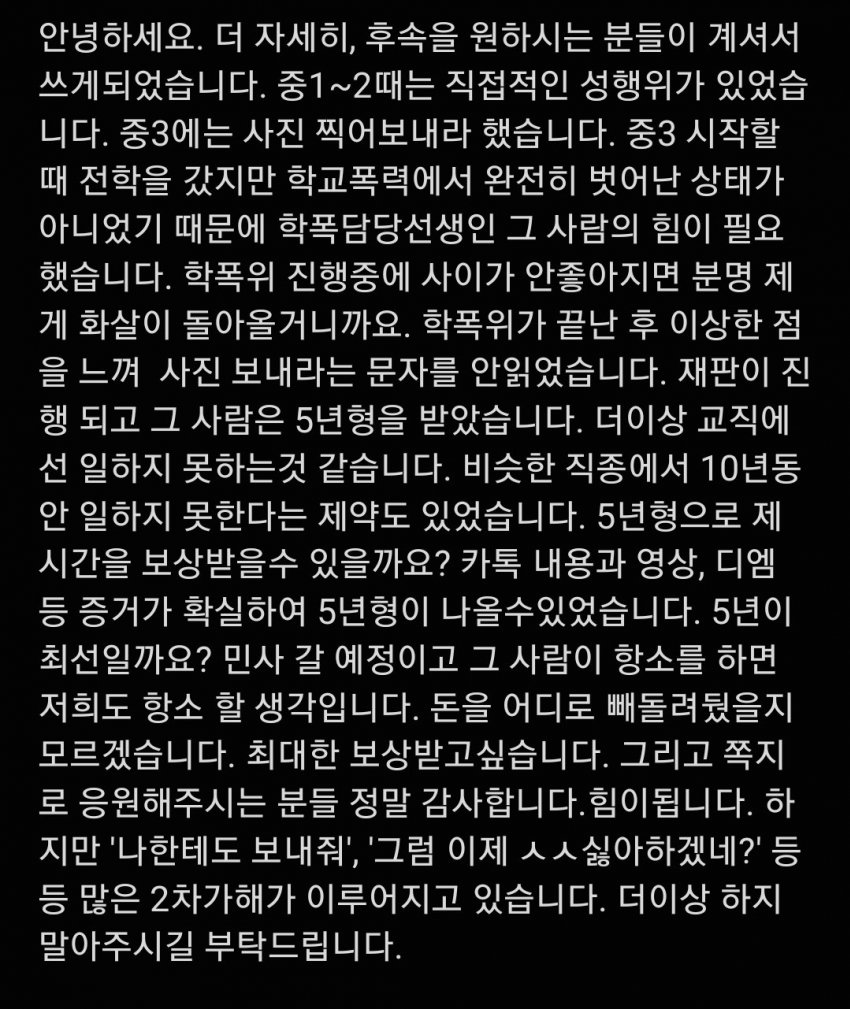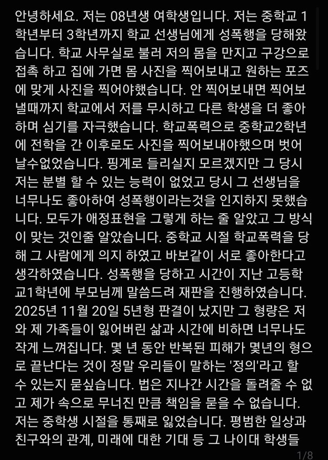 '저를 무시하고 다른 학생을 더 좋아하며 심기를 자극했습니다' '선생님을 너무 좋아해서 성폭행 인 줄 몰랐습니다'워딩이 하나 같이 ㅋㅋㅋㅋㅋㅋ
