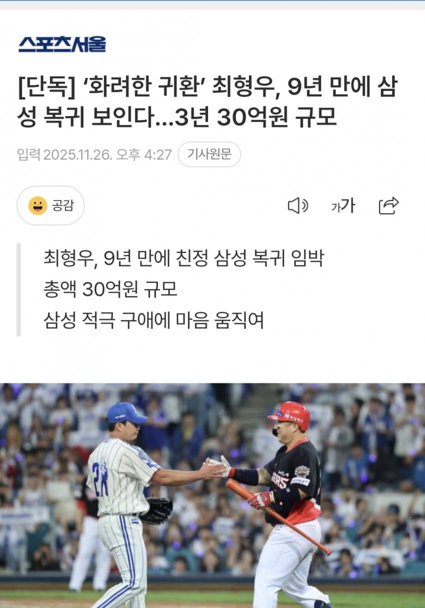 최형우는 삼성이 노예처럼 부렸는데 은퇴시즌 30억이면 줄만하다데려와서 영결 시키고 코치 연수 시키면 좋지돈 없는 구단도 아니고