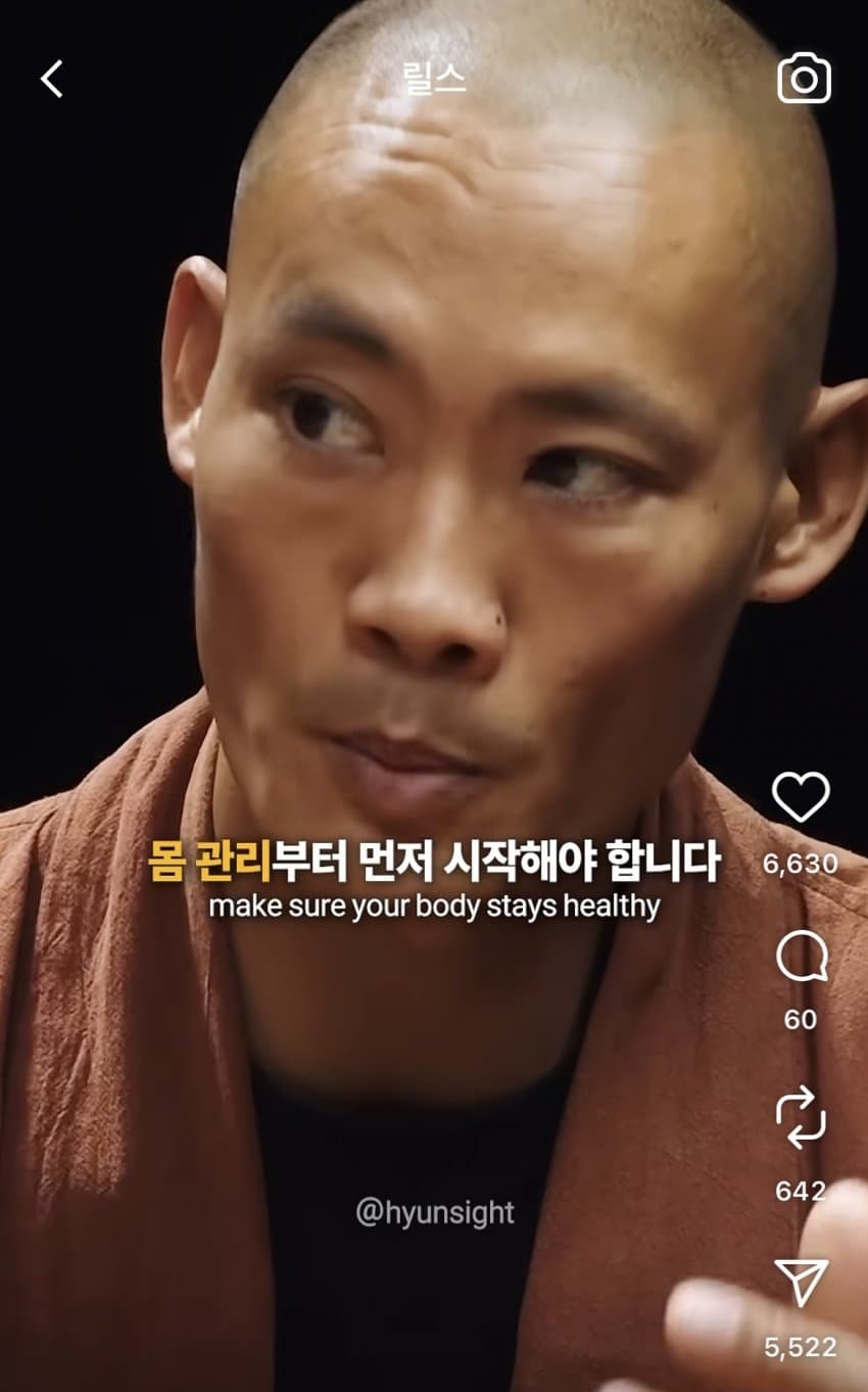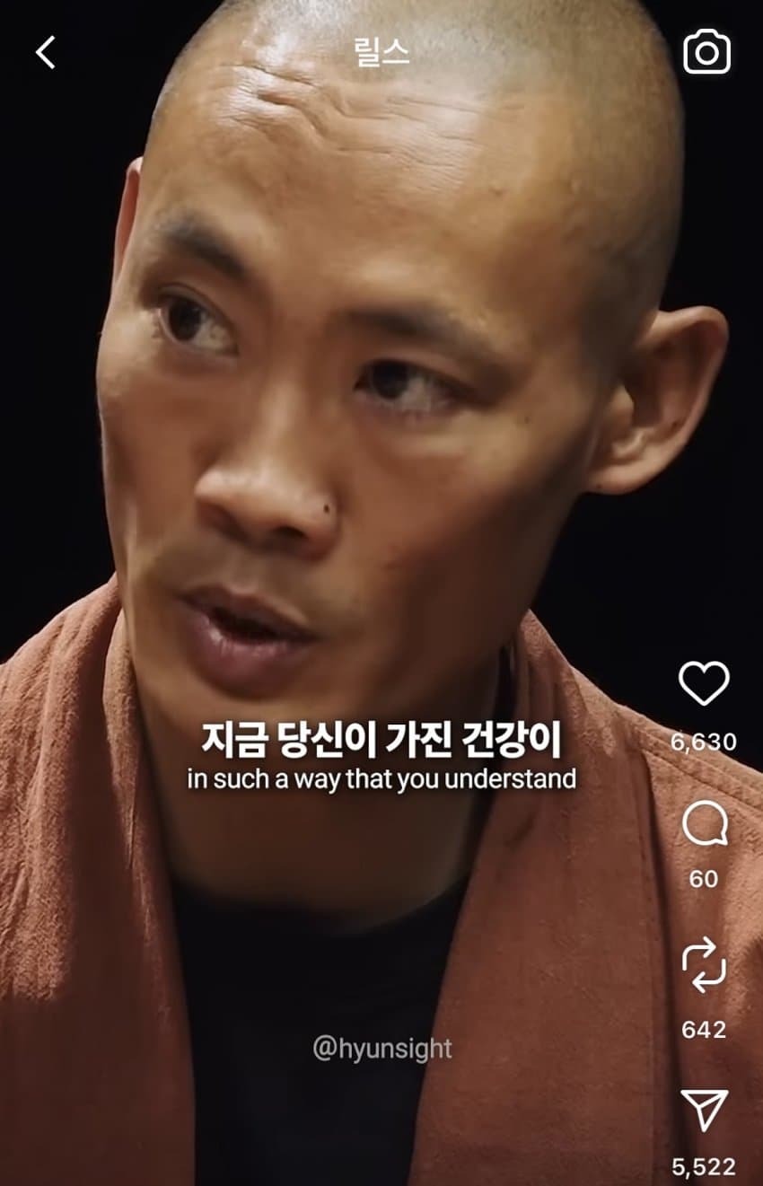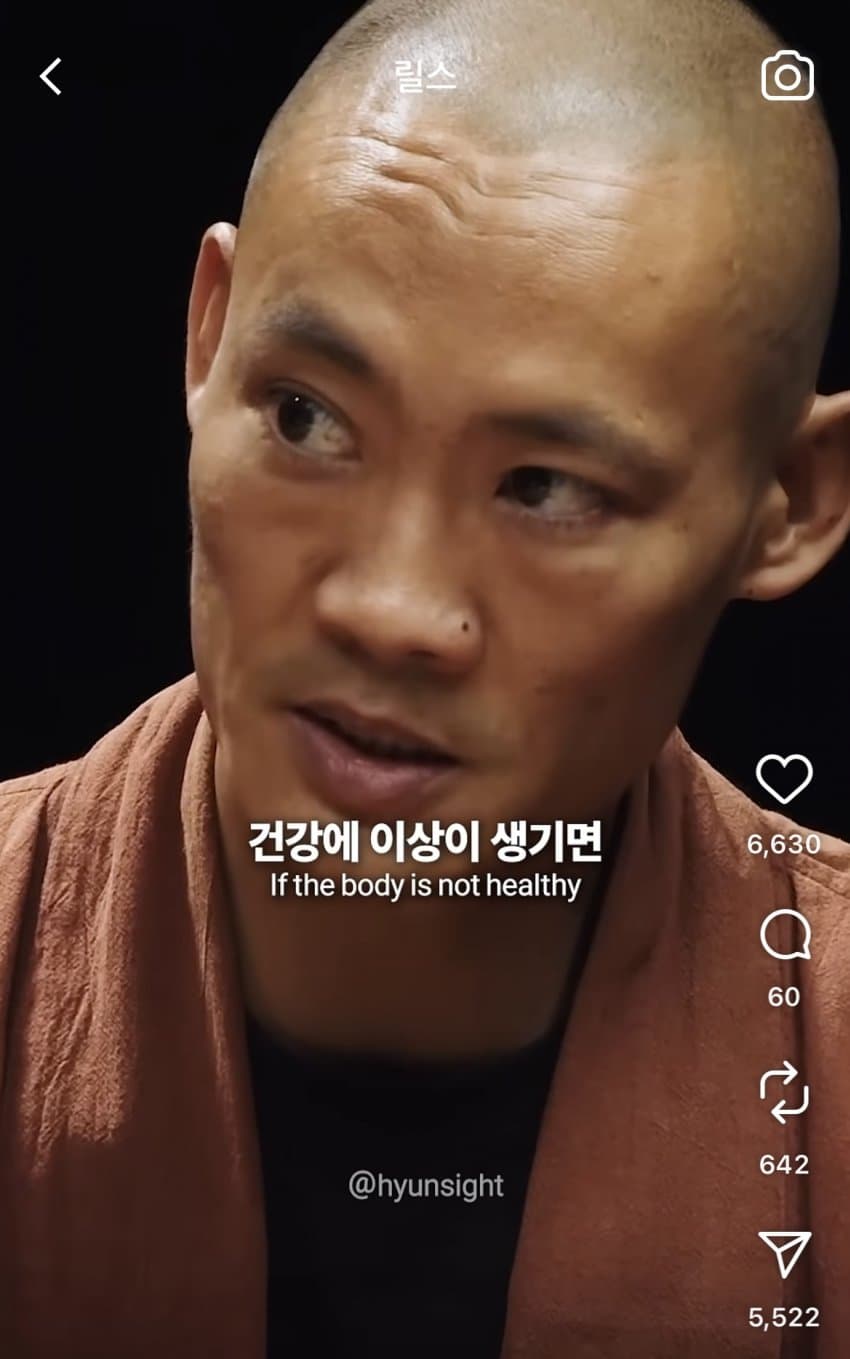 내가 알던 한국 스님들이랑 말하는 방식이 ㅈㄴ 다름 '지금 고민하는 그 많은 일들이 사실 병 앞에선 모두 사라지는 신기루 같은 거, 마음의 걱정을 덜어내고 좀 더 편한마음으로 몸을 사랑하고 지키세요'가 약간 해탈이나 마음의 평안을 중요시하는 한국식인데 '무슨 일을 하던지 건강했을때 가능하니까 ㅈㄴ 중요한 건강부터 돌봐야합니다'는 상당히 진취적인 방식이네 해탈이나 평안은 전혀 안 들어있음 그냥 의사가 할 법한 얘기인데 저게 중국식인가