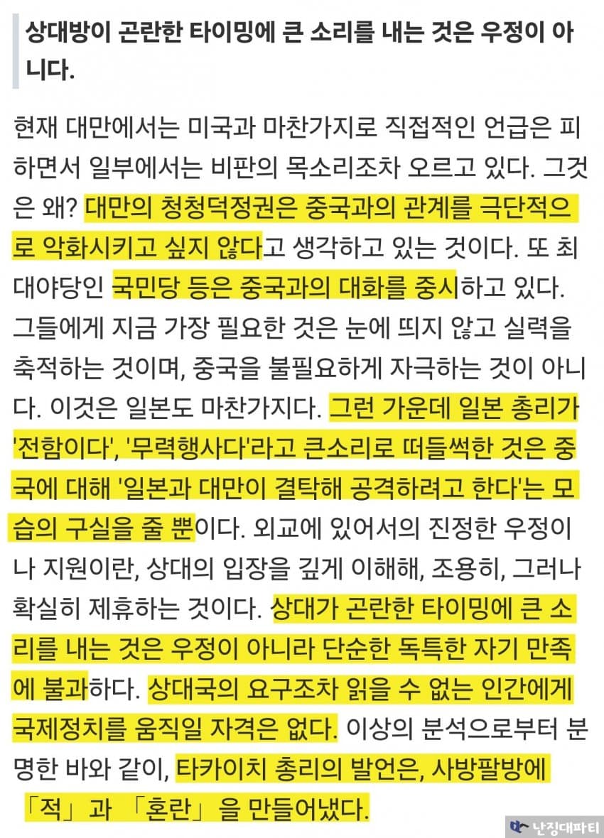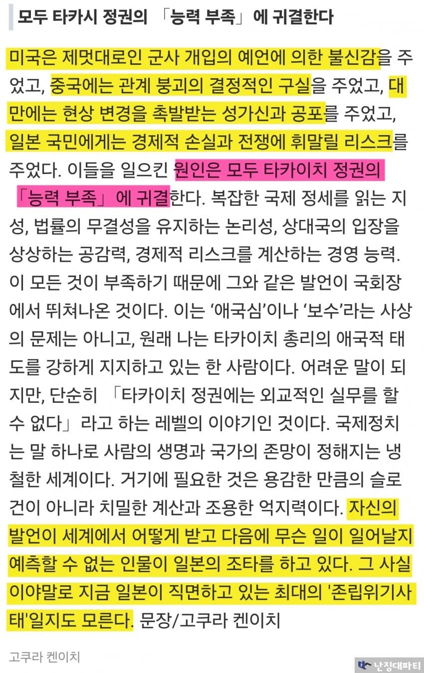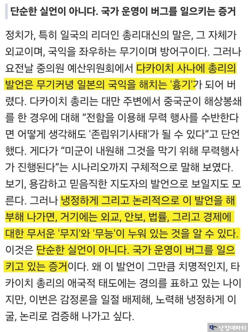 이런 대만 당국의 분석을 앞서 일본에서 나온 다카이치 비판 기사와 함께 읽어보면 더욱 재미있음
