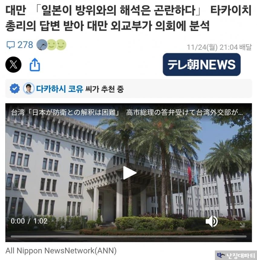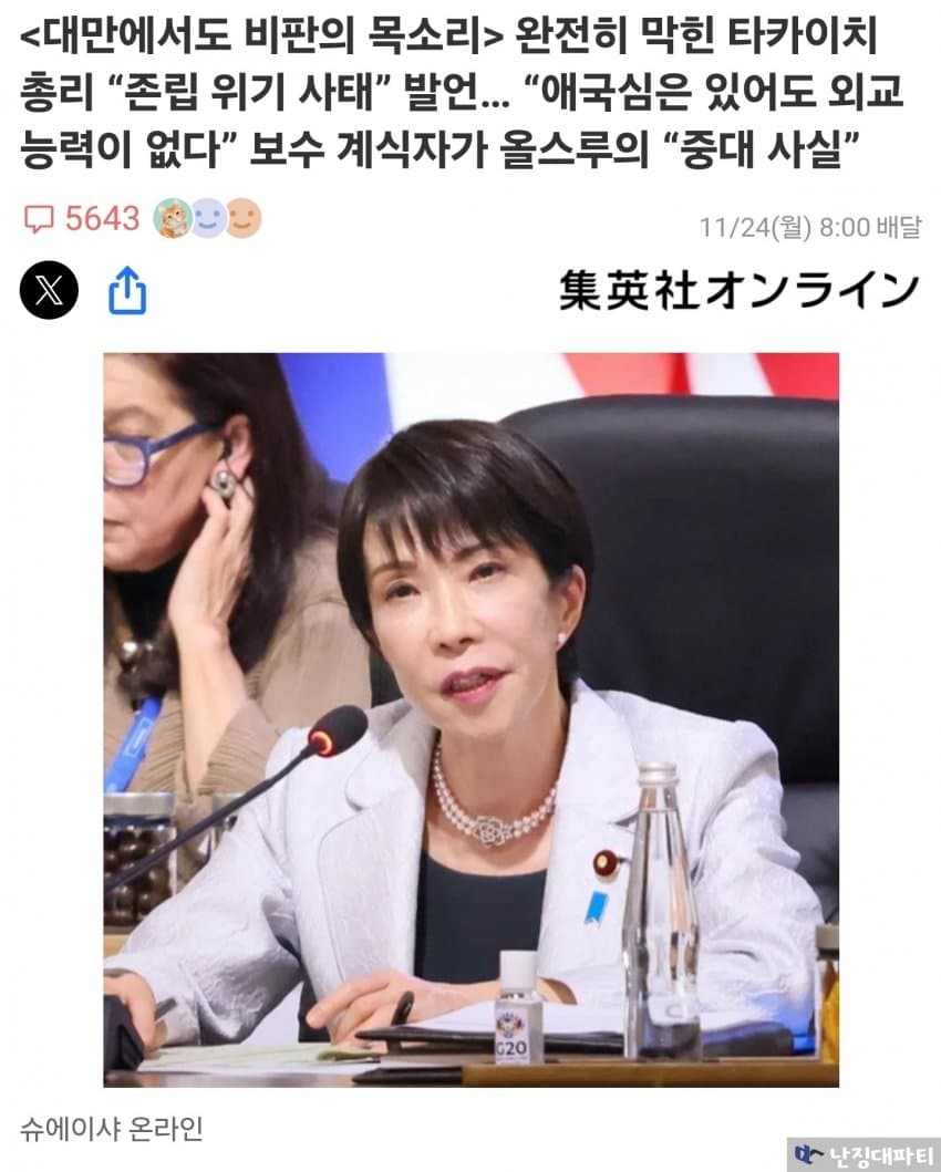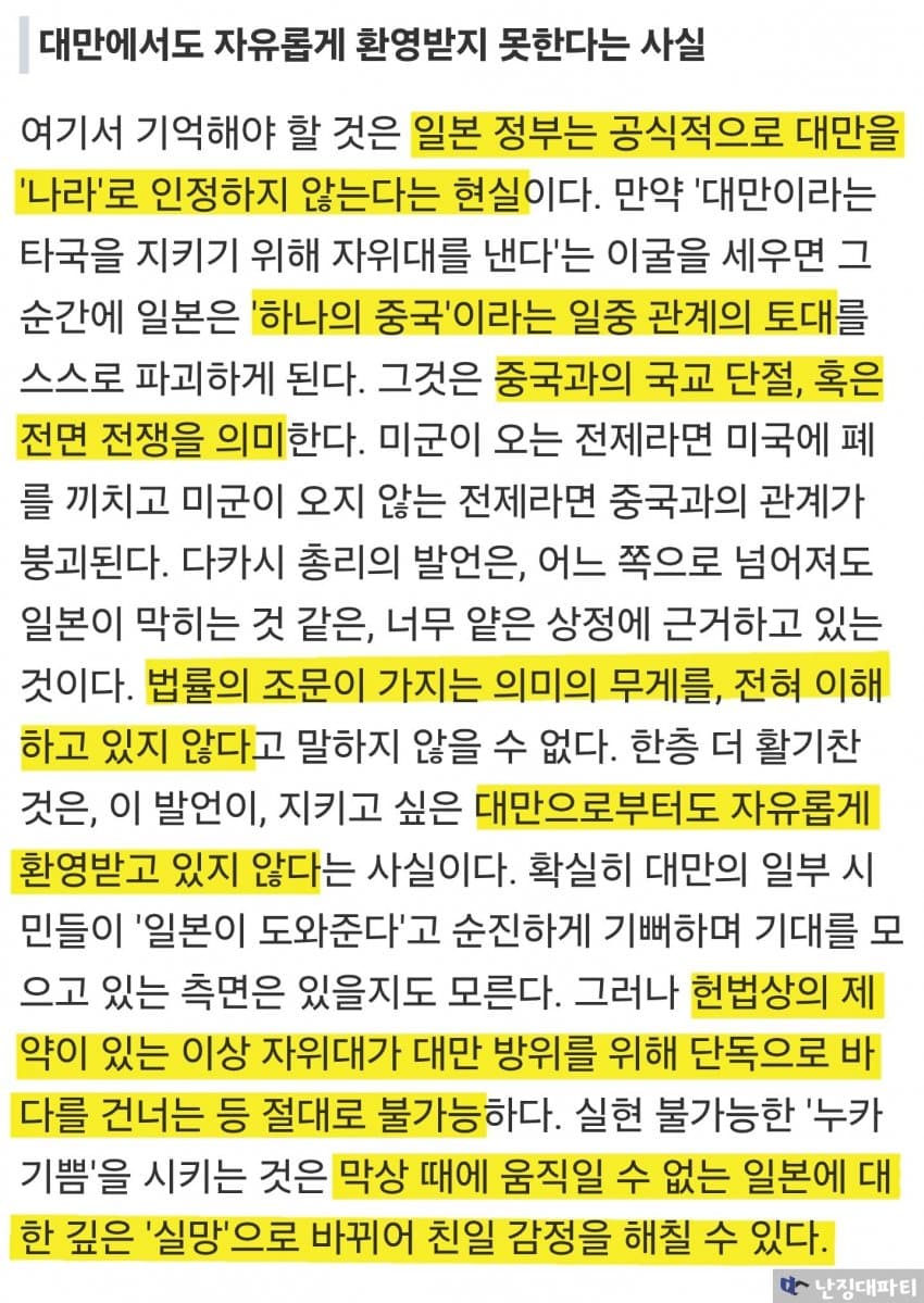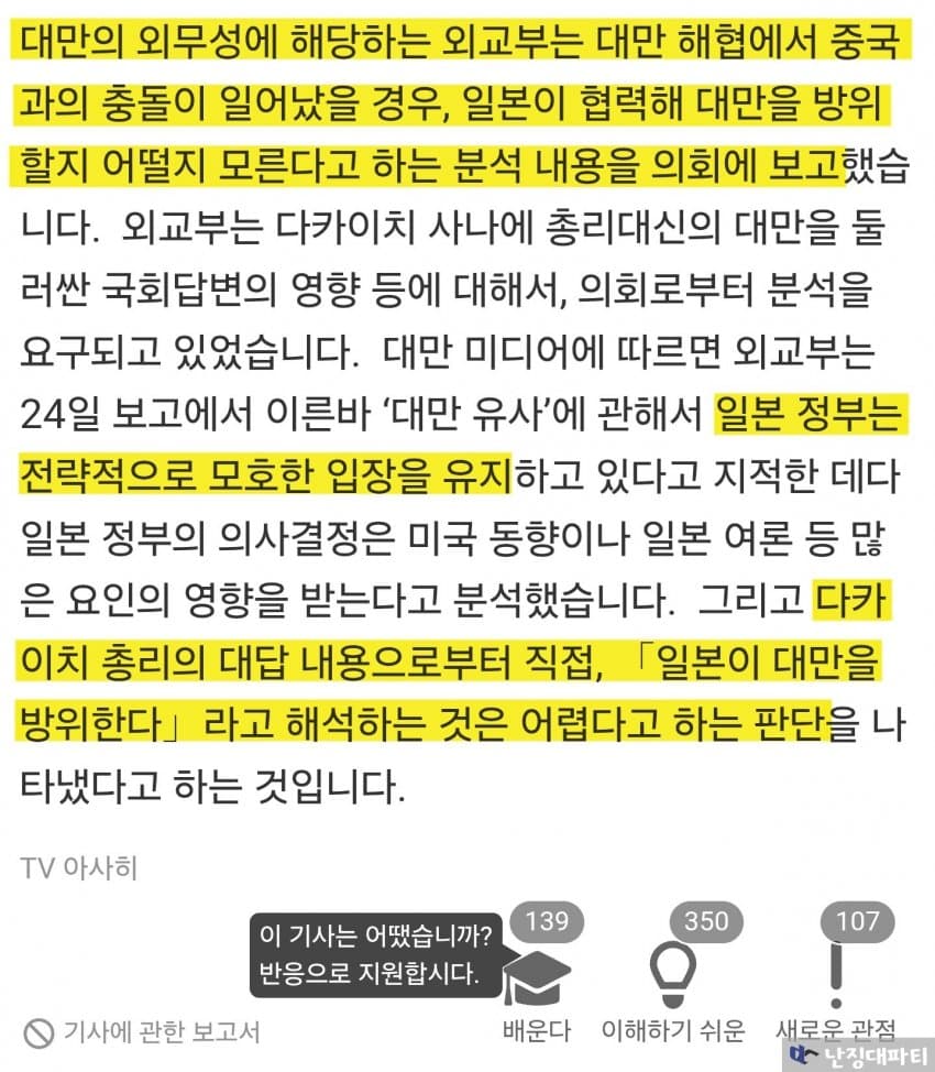 이런 대만 당국의 분석을 앞서 일본에서 나온 다카이치 비판 기사와 함께 읽어보면 더욱 재미있음