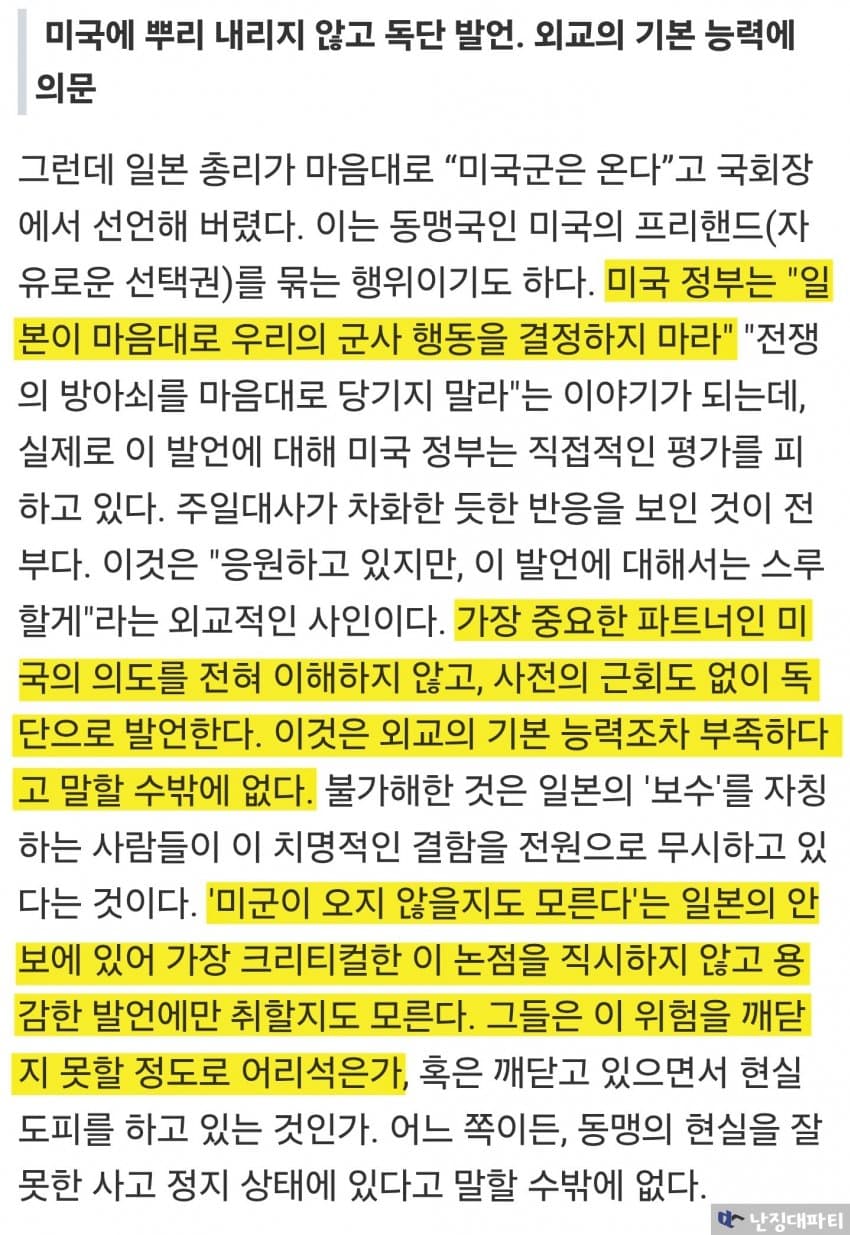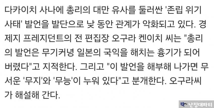 다카이치의 망언은 일본의 국익을 해치는 흉기