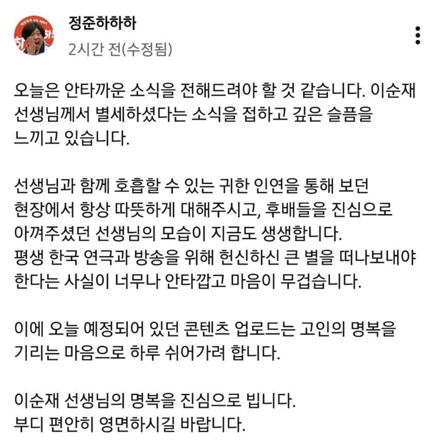 거침킥 엔딩에서 순재 할배 치매로 나와서 슬펐는데, 그래도 큰 병없이 오래 사셔서 다행