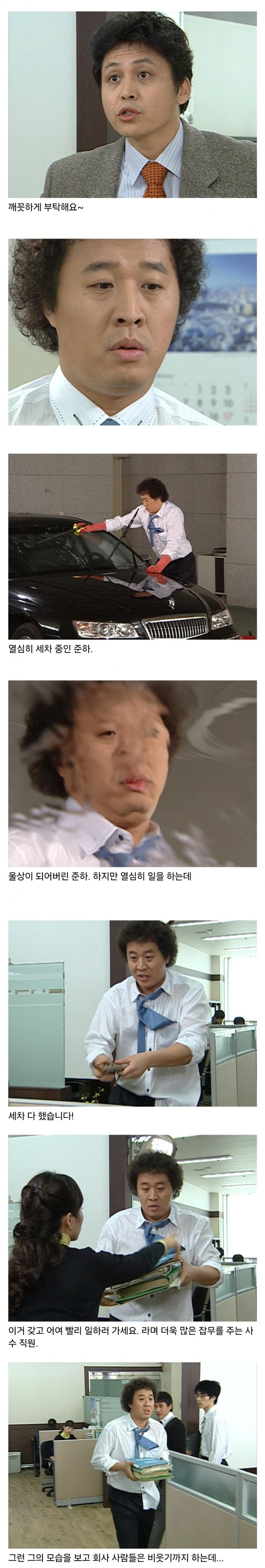 근데 친척이 개새키 아님? 저런일자리를 무슨 추천을 해줌 ㅋㅋㅋㅋ그리고 뭔 양복을 입고 갔는대 세차를 시키고 구두를 닦이를 시키노경비한테 시켜도 요즘은 노동청에 신고 들어감