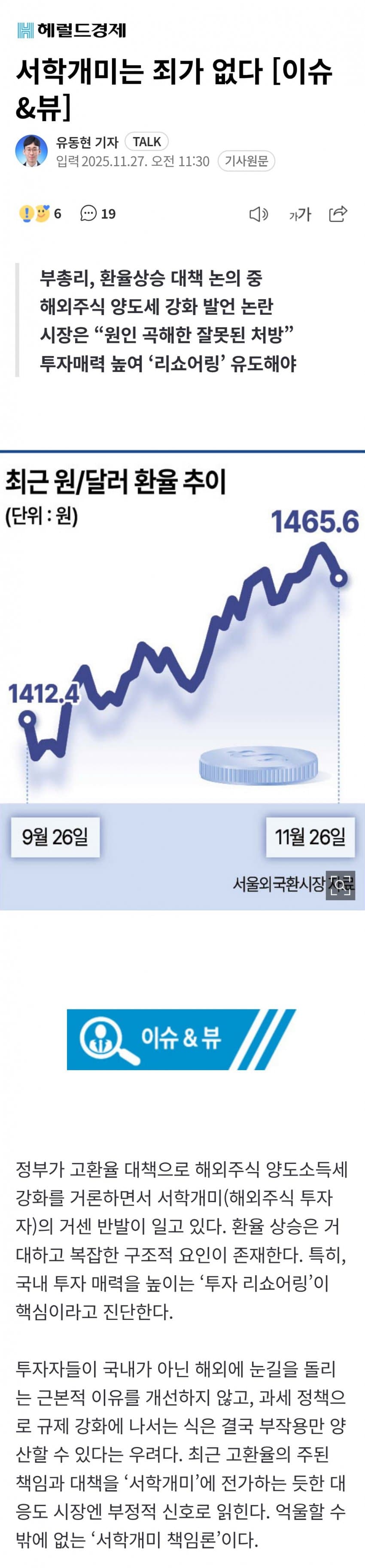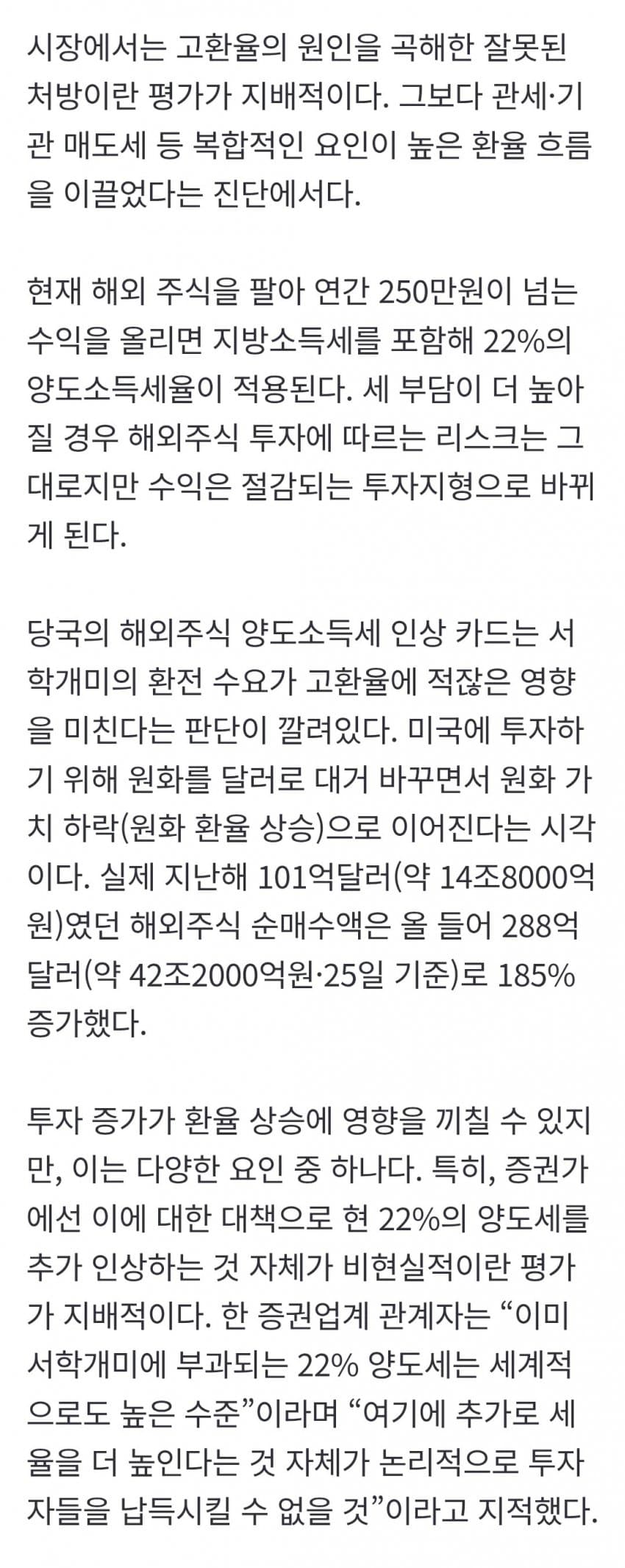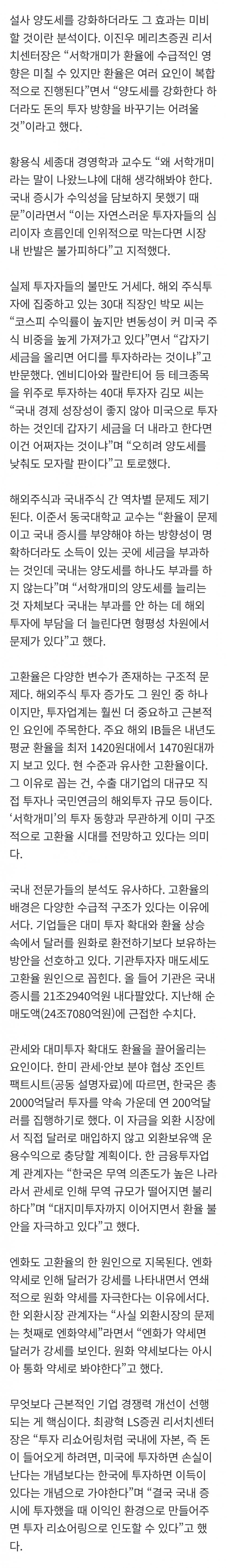 서학개미때문에 환율이 올랐다는 소리는강물에 물 한 컵 부었더니 홍수가 났다고 저 놈 돌팔매질 하자는 소리임