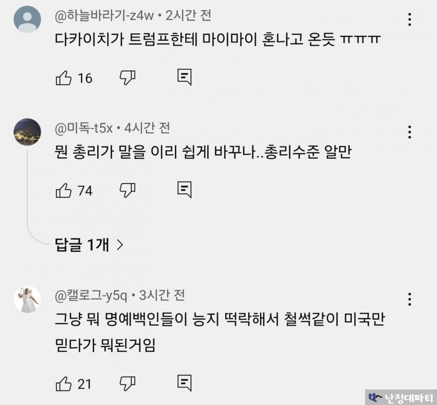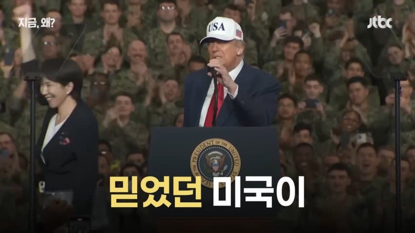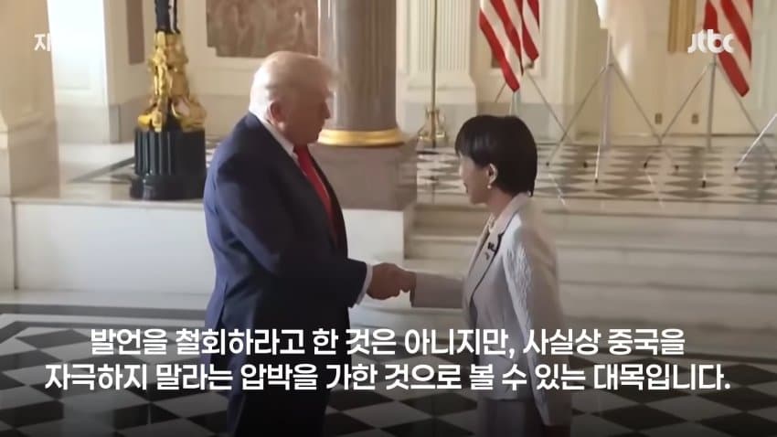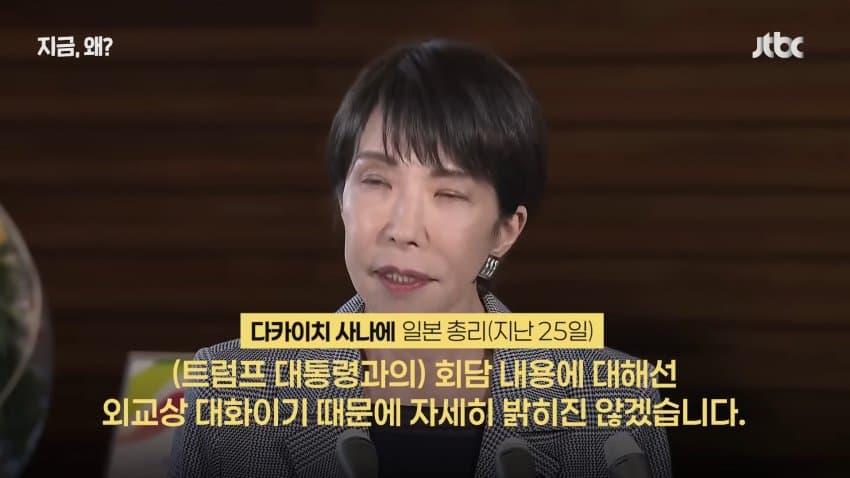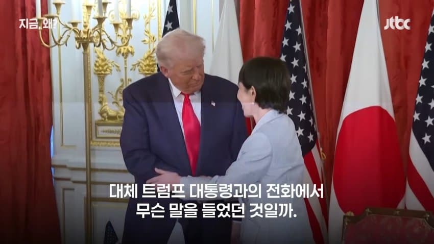 트럼프의 호통에 질겁하여 제 입으로 지껄이던 허세와 객기를 쥐꼬리처럼 말아삼킨 다카이치의 추악한 꼬라지를 보라