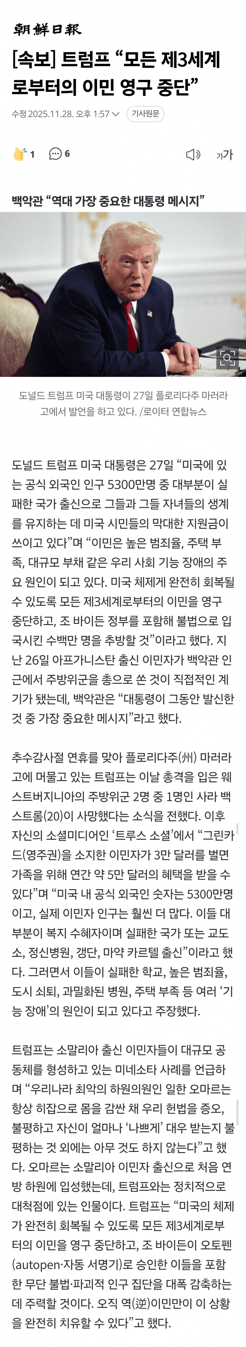 저게 자국민 위하는 진정한 대통령이지 어줍잖은 선민의식에 사로잡힌척하면서 뒷배 눈치본다고 자국민 역차별하고 외국 범죄자 받아들이려고 혈안인 넘들이 문제지