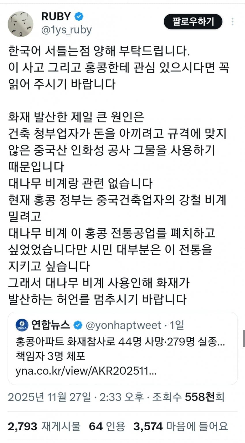 홍콩 화재대나무가 아니였다...